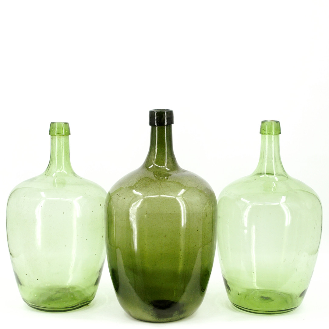 5010609. GLASFLASKOR, 4 st, brunt och grönt glas, 1900-tal.