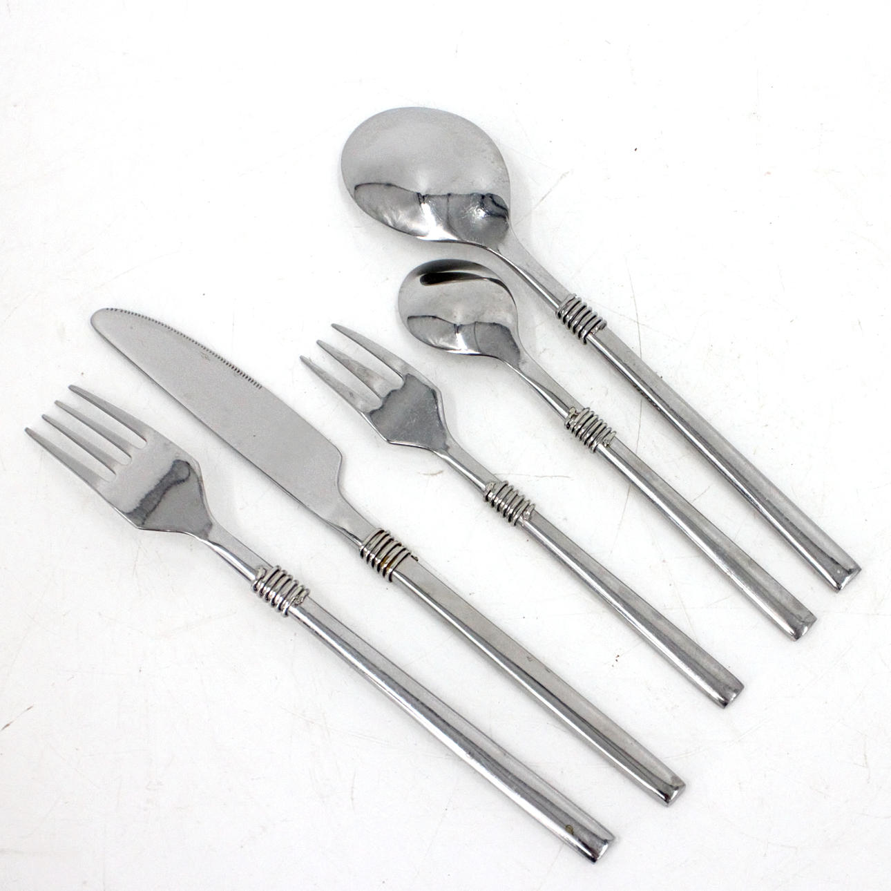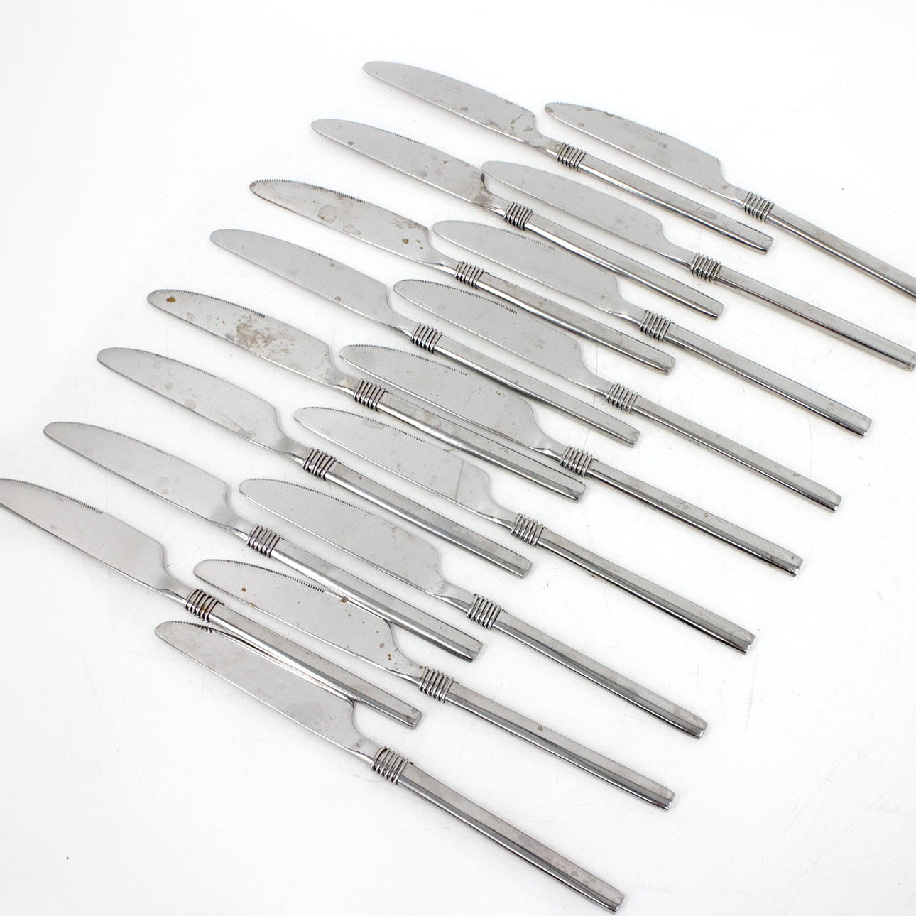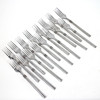 16 gafflar, 19,5 cm 17 knivar, 21 cm 1 sked, 19,5 cm 3 teskedar, 15 cm 2 plockgafflar, 15 cm.