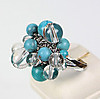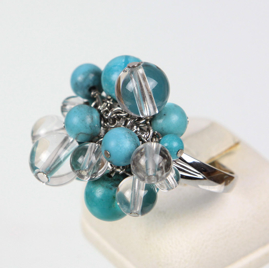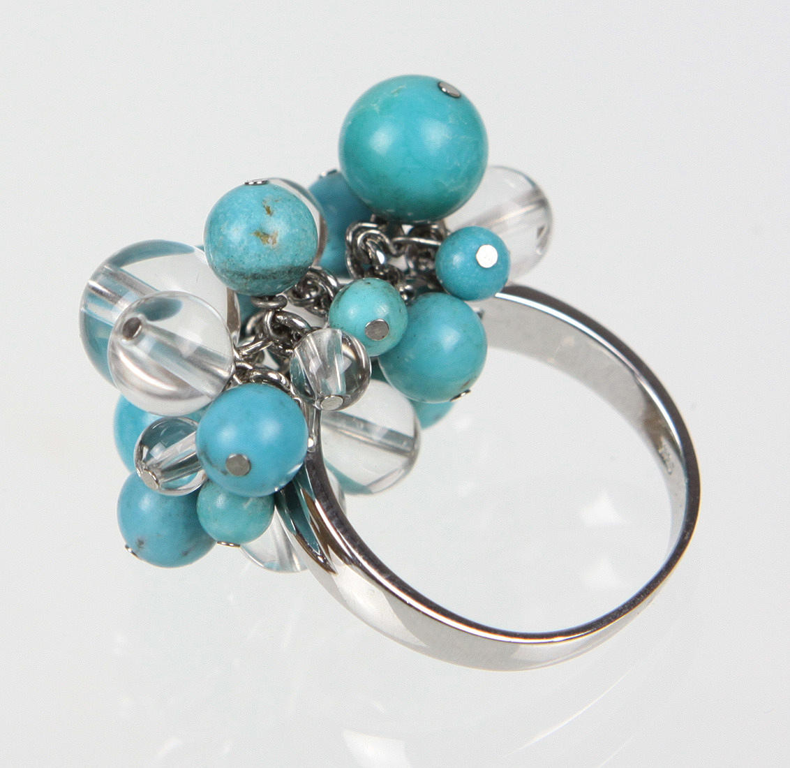 ring av 925 silver, ring huvud set med flera turkos och bergkristall pärlor från en storlek 8 till 4 mm, ringstorlek 66, vikt 12,4 gram.