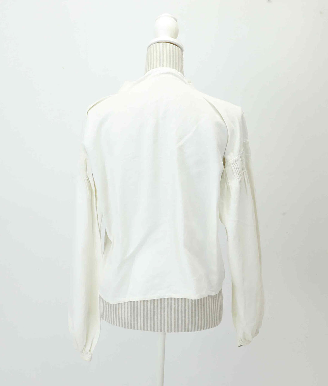 Blus i blekt linne, manchettknappar, monogram och datering 1979, bystmått 112 cm, ärmlängd från halsringning 78 cm, längd från axel fram ca 50 cm.