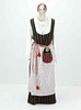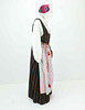 Livkjol i yllerandning, livet fodrat med linnetyg, hakar o hyskor, bystmått ca 116 cm, midjevidd 106 cm, längd från axel fram 140 cm + 6 cm i fåll.
