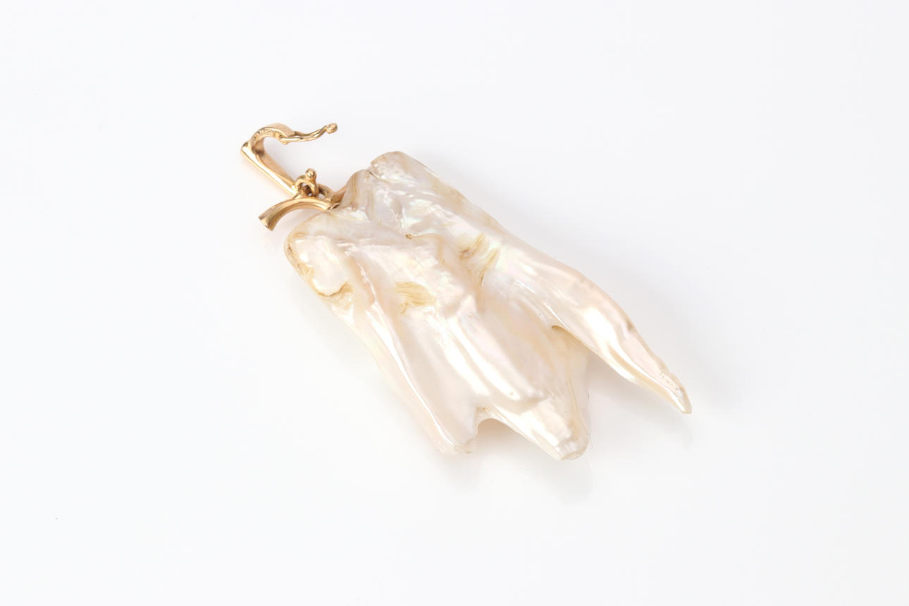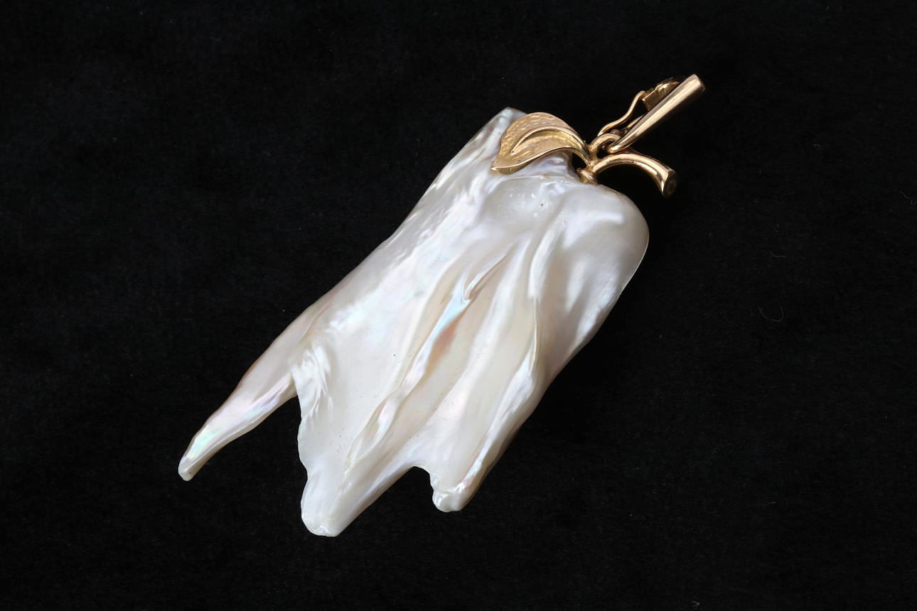 Ett guldhänge 18k med odlad keshi-pärla ca 50 x 25 mm.