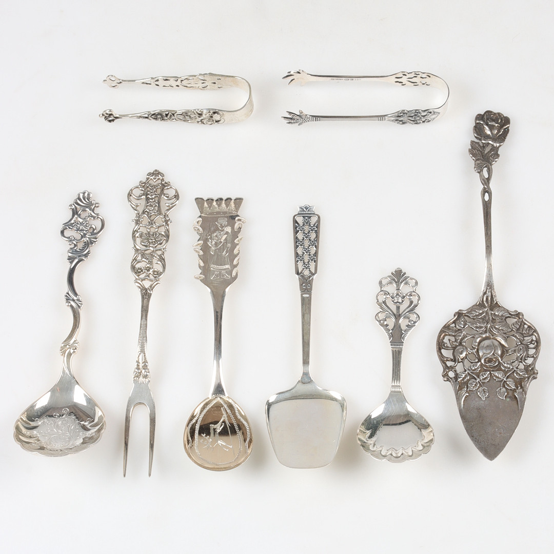 5013445. SERVERINGSBESTICK, 8 st, silver, 1900-tal.
