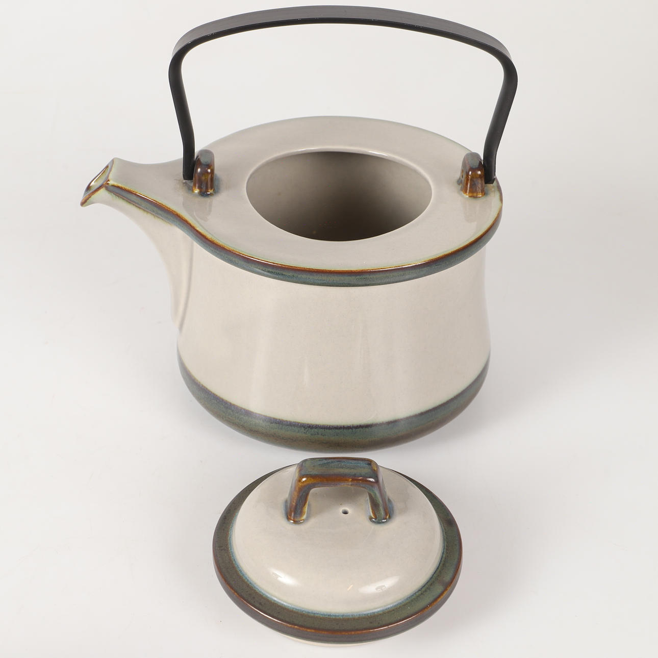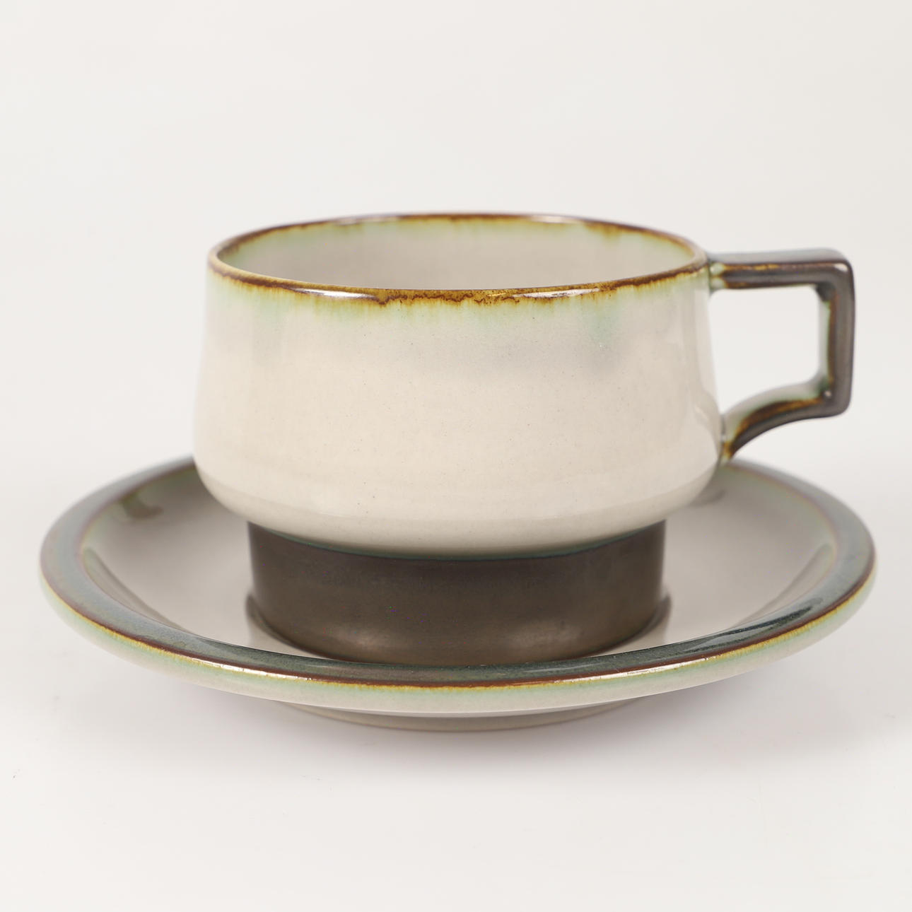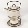 6 tekoppar, höjd 6,5, diameter 8,5 cm 7 tefat, diameter 15 cm 1 tekanna, höjd och diameter ca 16 cm utan handtag.