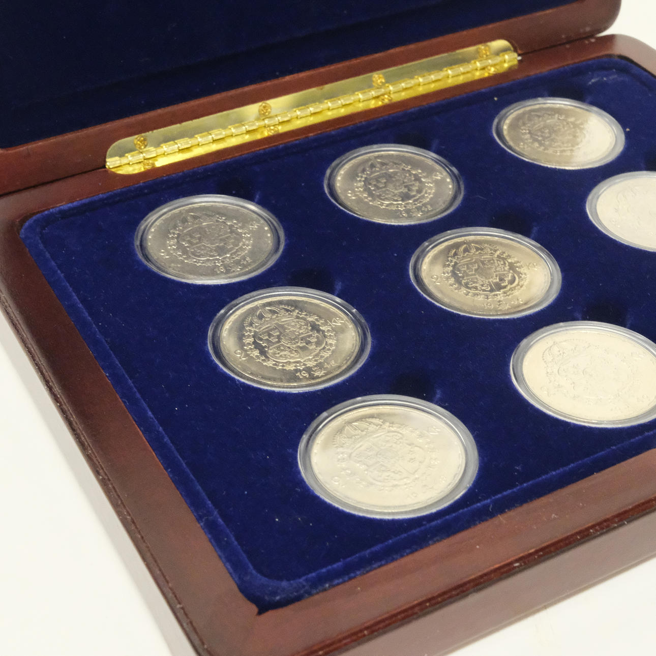 9 stycken mynt, 2 kr, 40%, total vikt ca 126 gram.