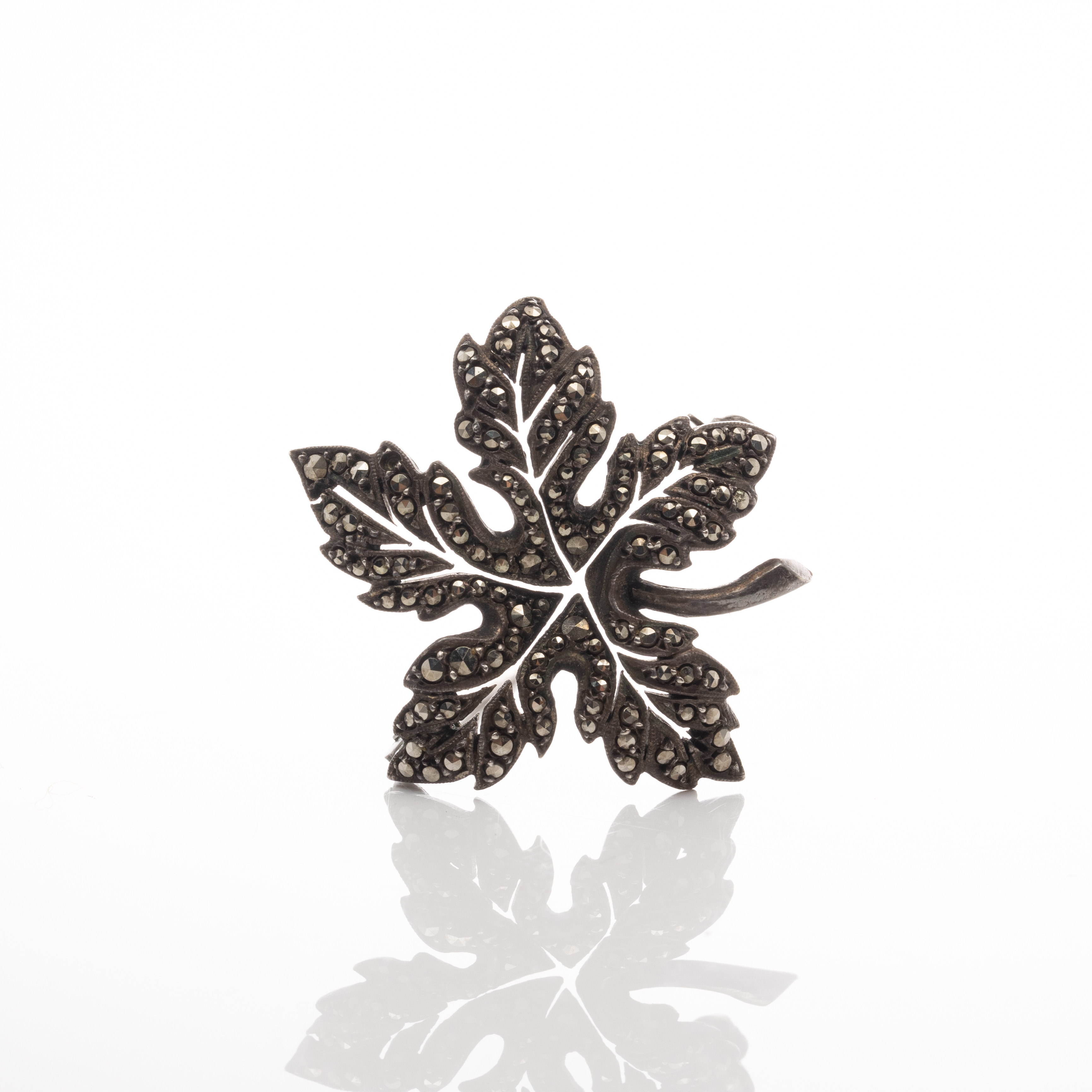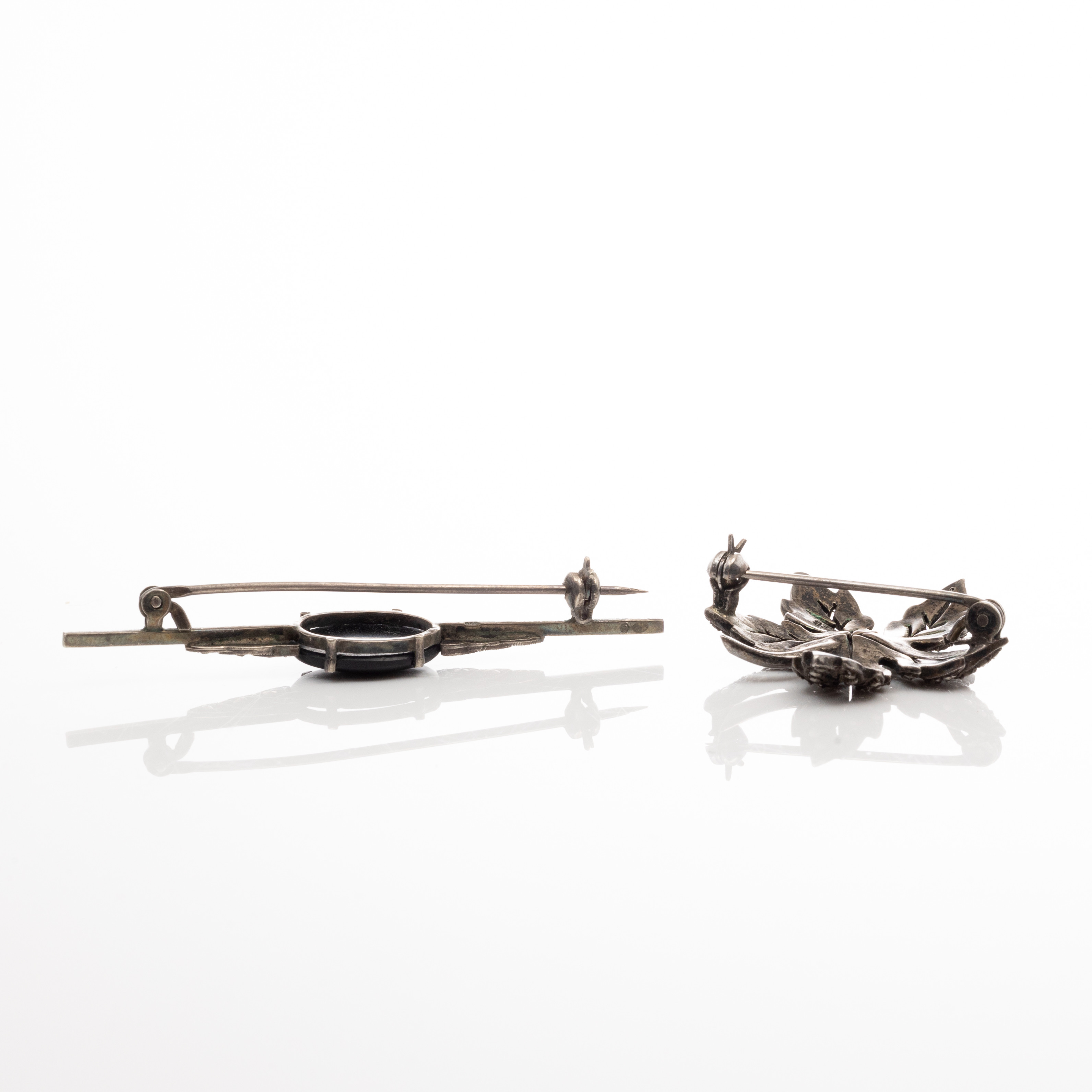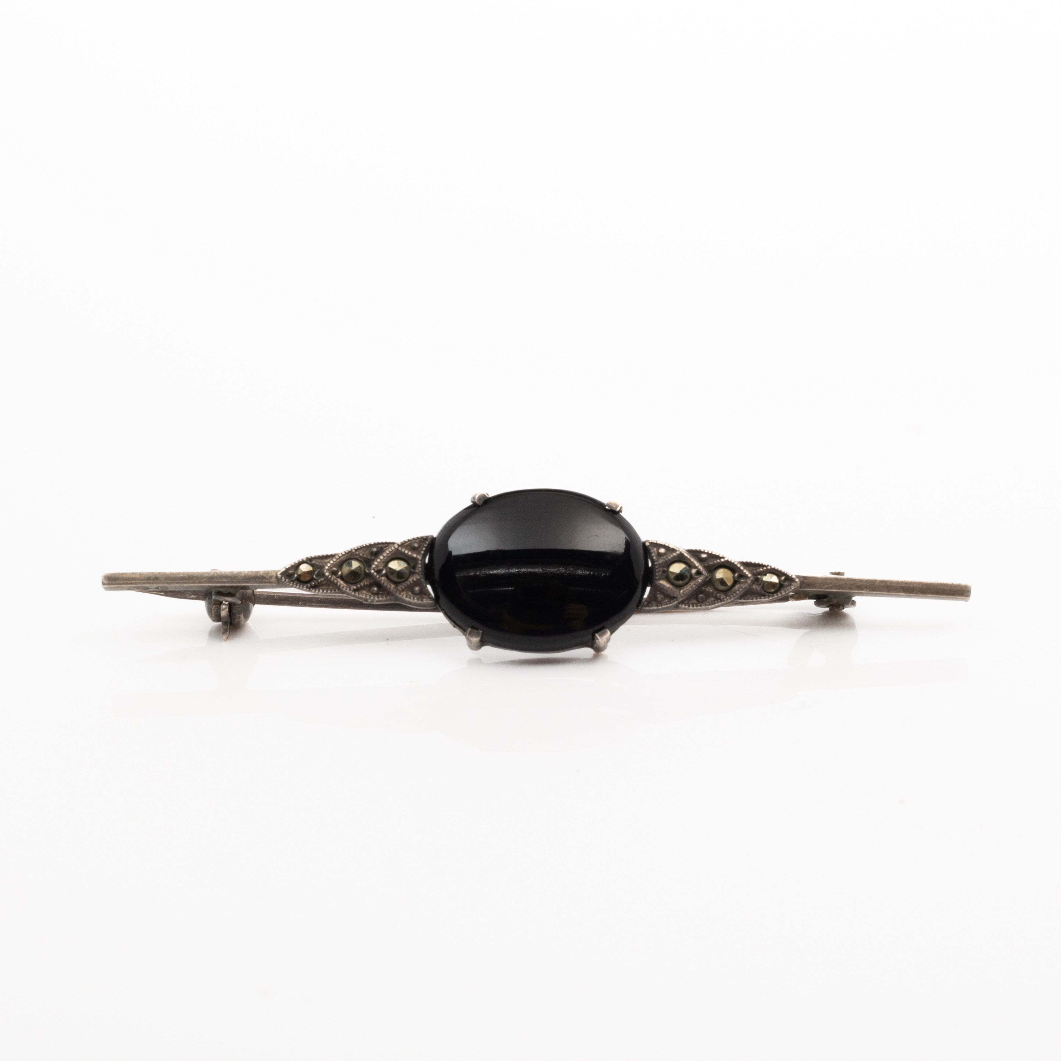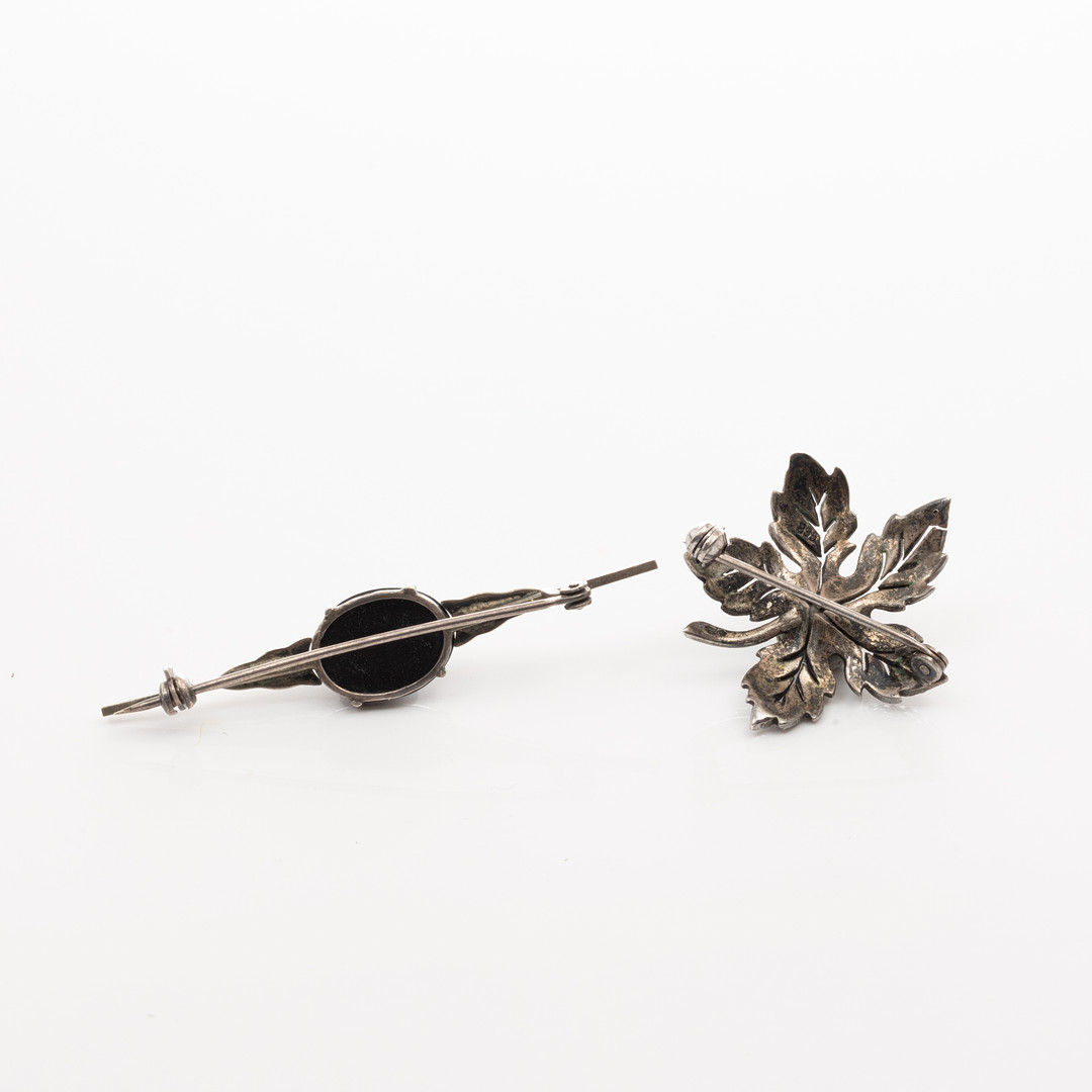 5014436. BROSCHER, 2 st, Silver, Markasiter, Onyx.