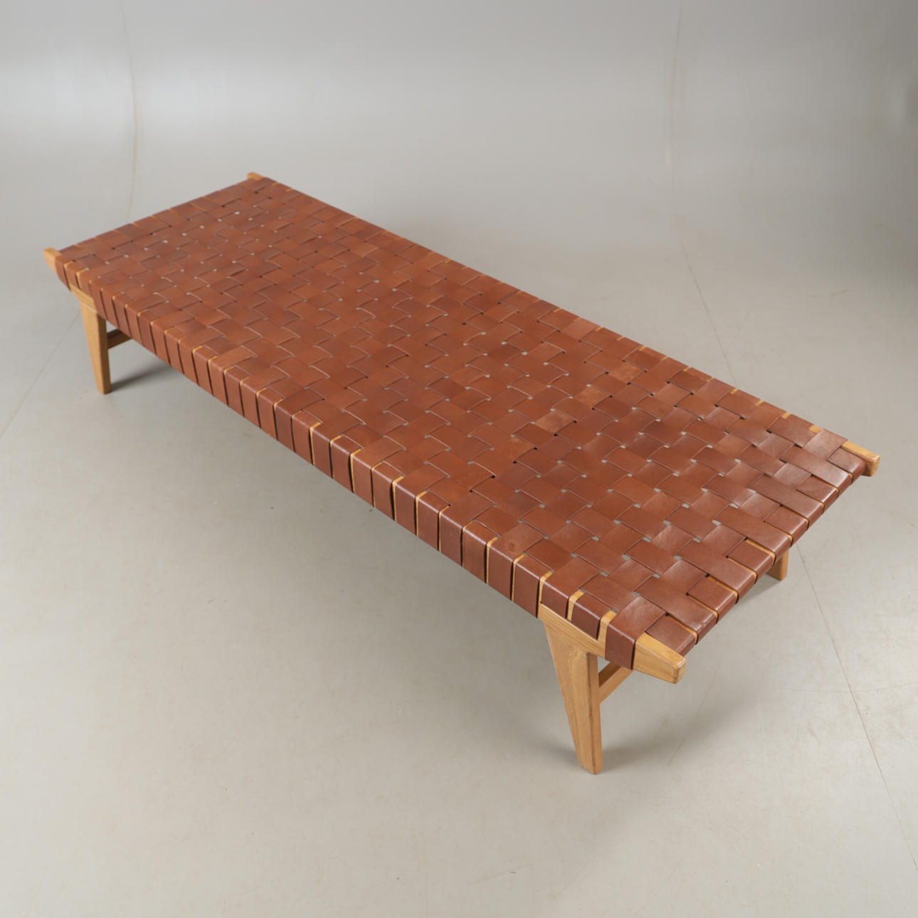 5014530. DAGBÄDD, teak med flätad skinnklädsel, samtida.