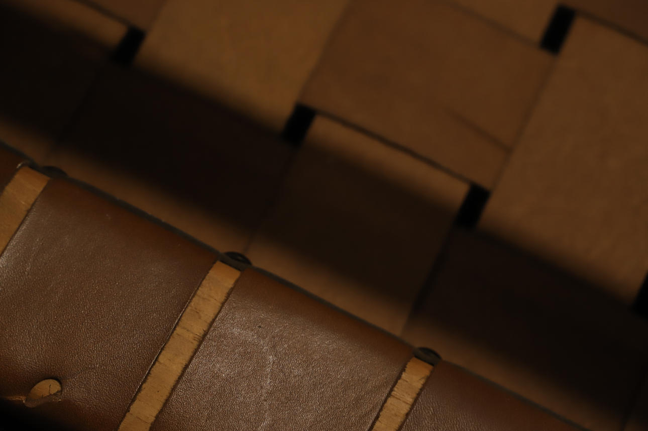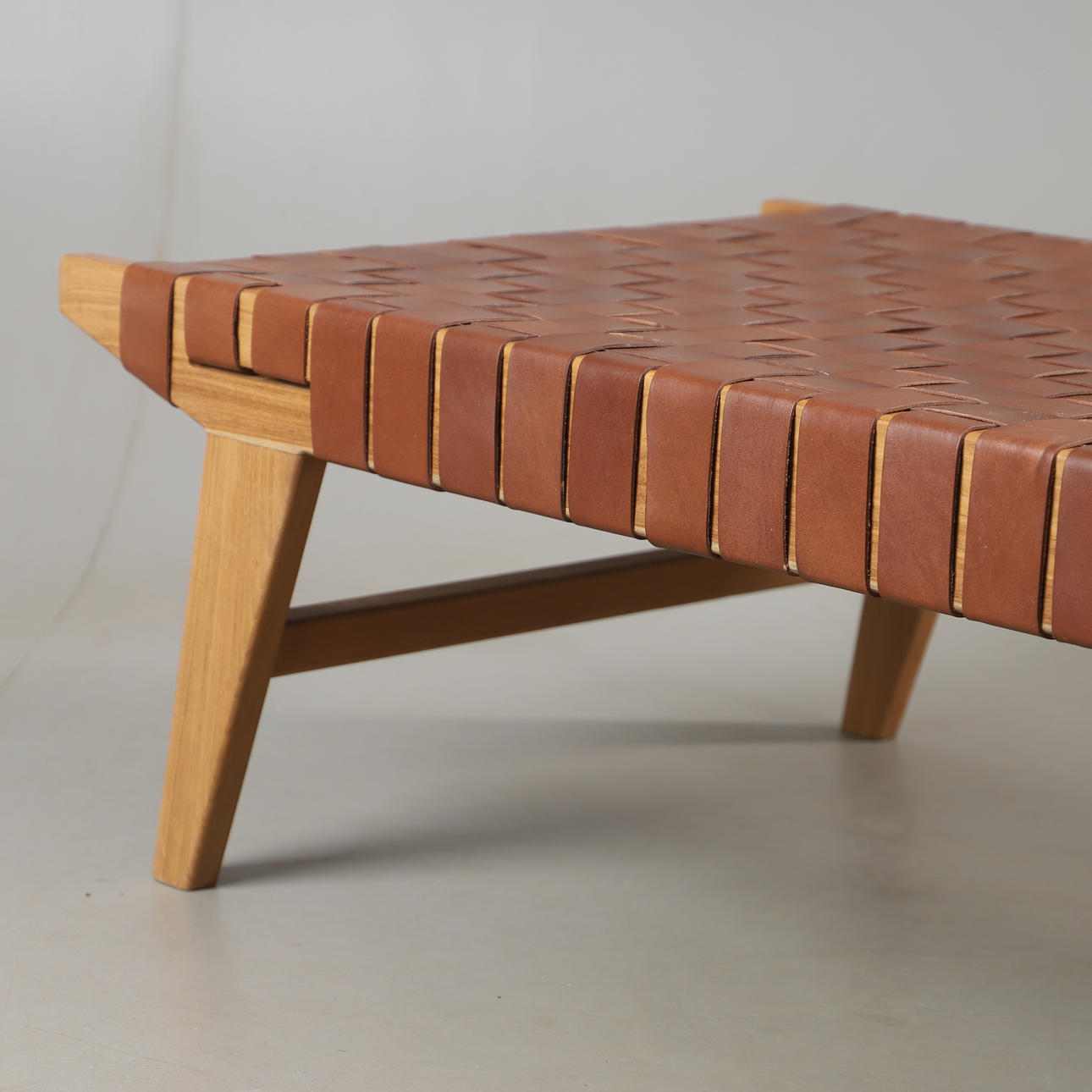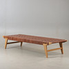 DAGBÄDD, teak med flätad skinnklädsel, samtida.