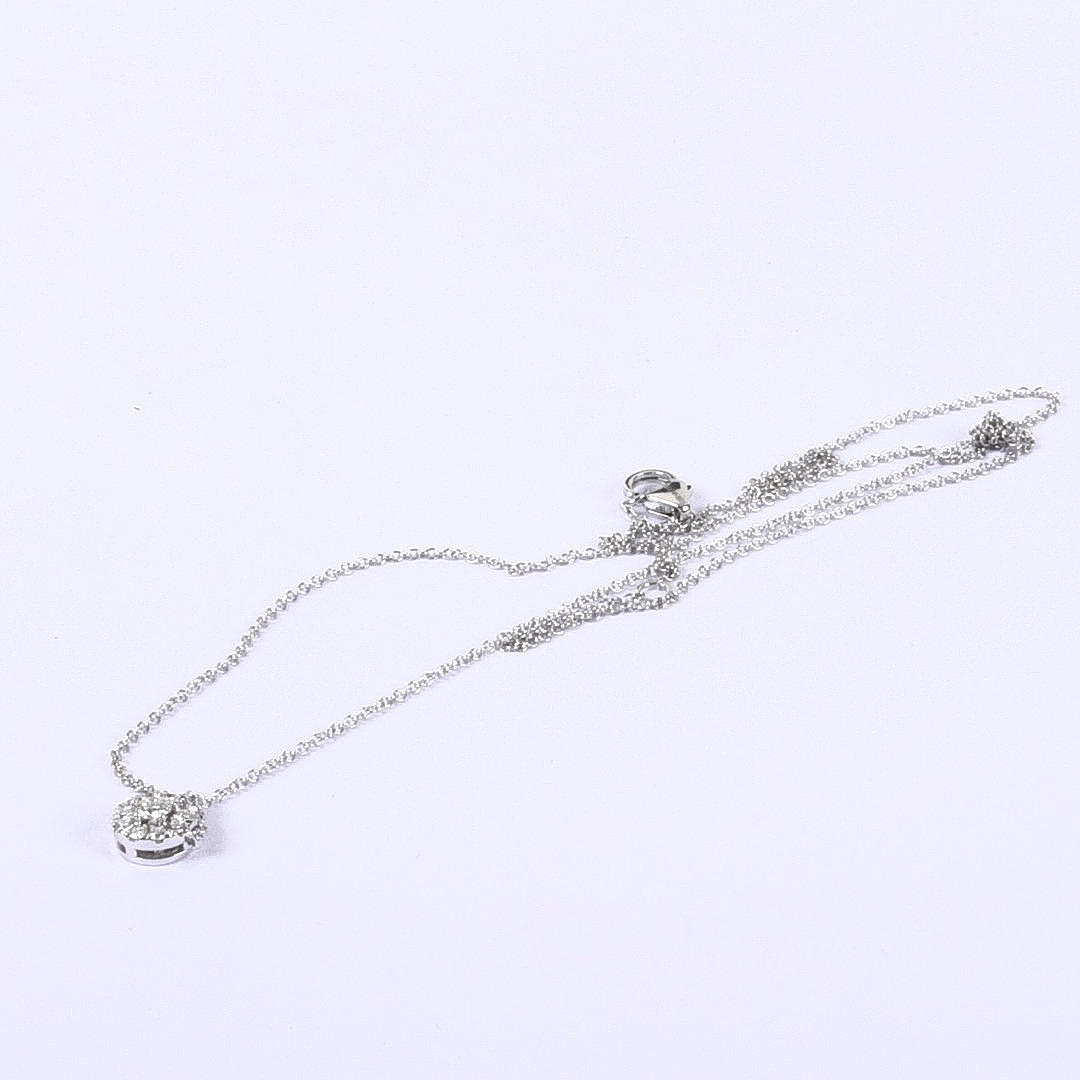 Besatt med en större briljantslipad diamant samt 10 st mindre briljantslipade diamanter på totalt 0,21ct.