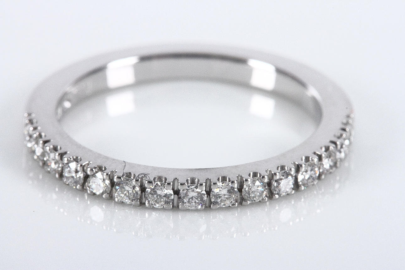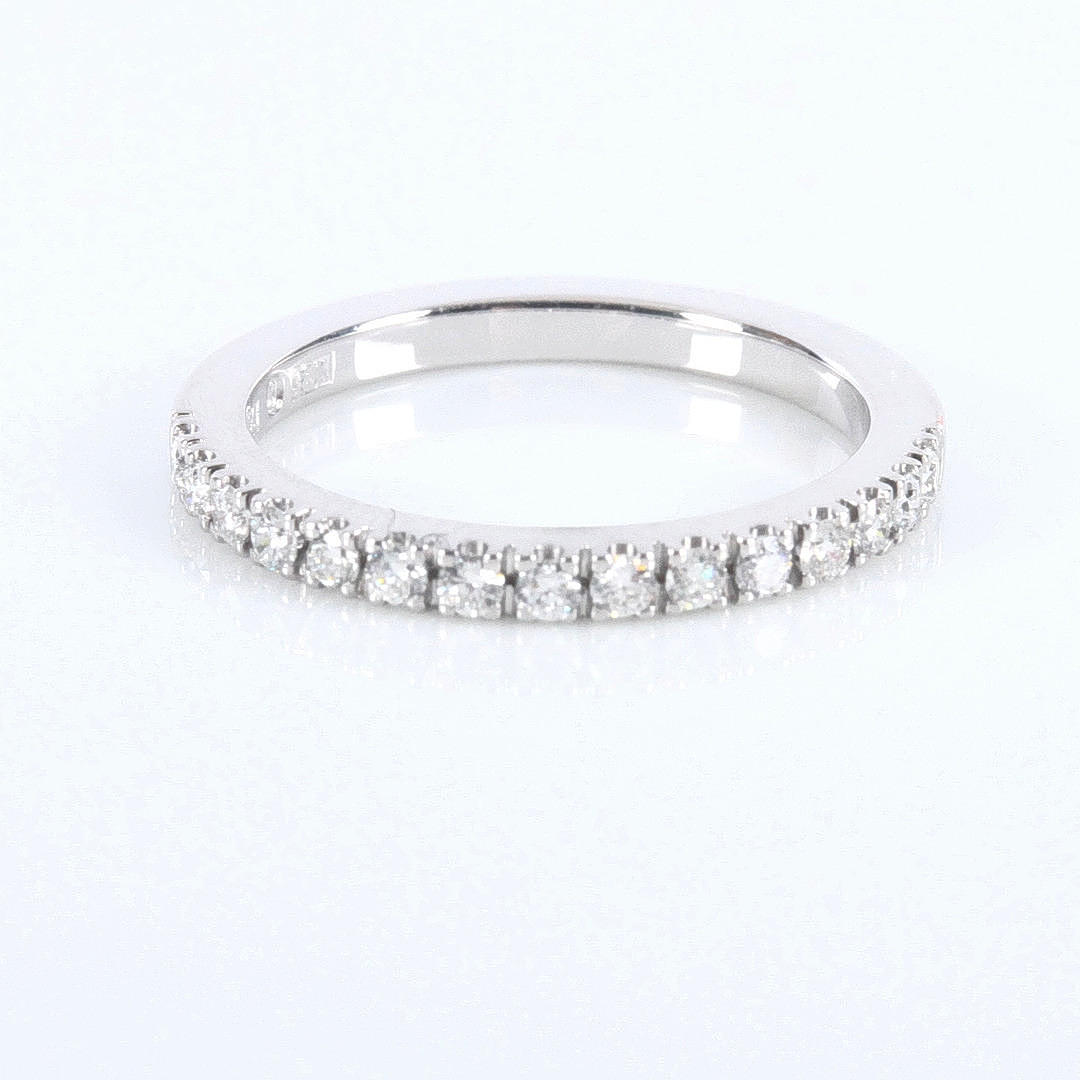 Besatt med 15 st briljantslipade diamanter på totalt 0,27ct, ca Top Wesselton-Wesselton/VVS-VS, storlek 50, vikt 2,8 gram.