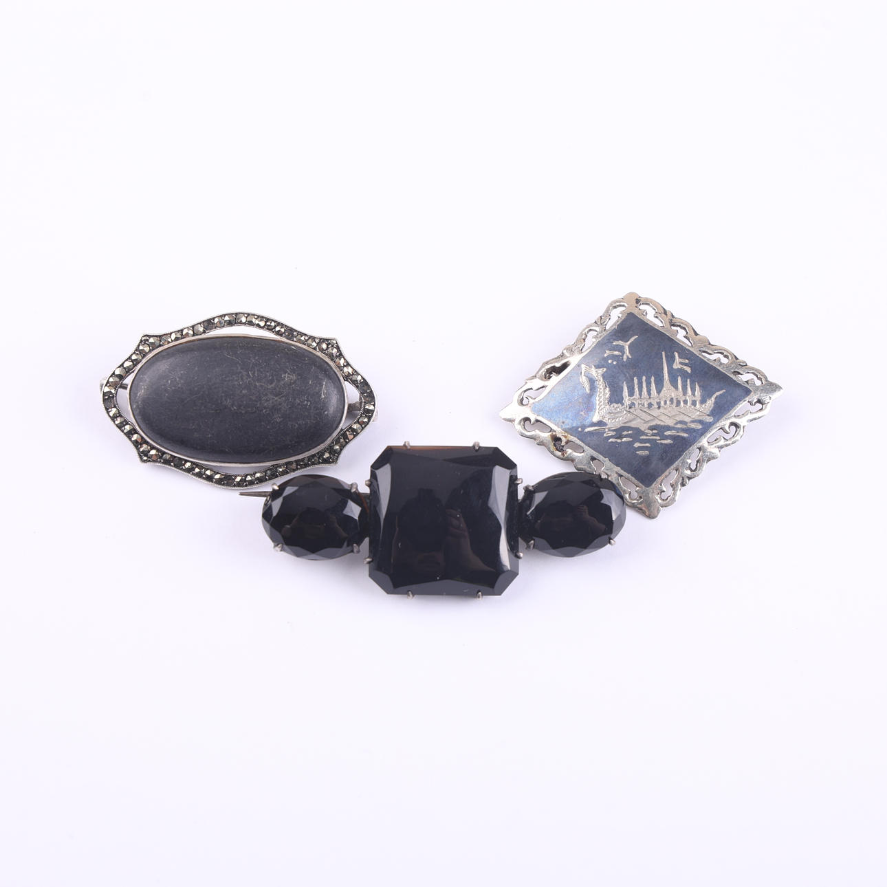Blandade broscher i silver.
