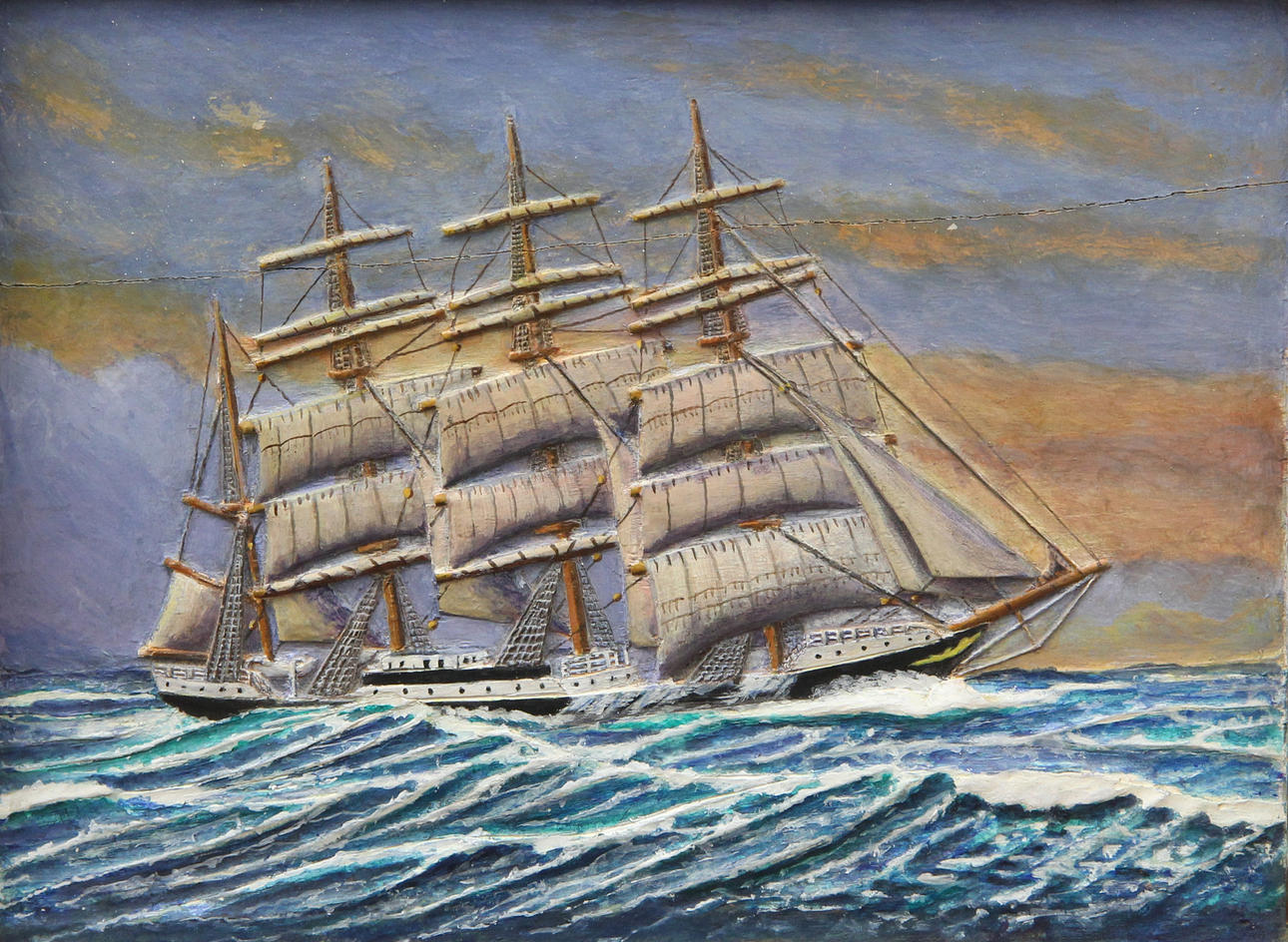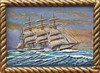 5015813. OLJA, på trärelief, skeppsmotiv.
