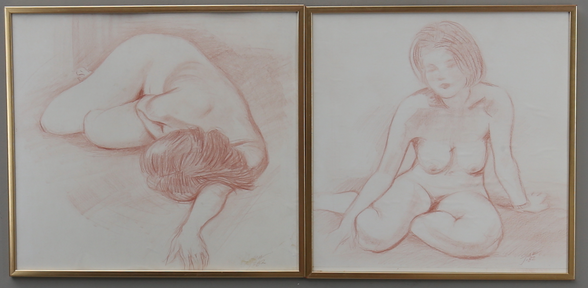 501636. OIDENTIFIERAD KONSTNÄR. Teckningar, 2 st, rödkrita.