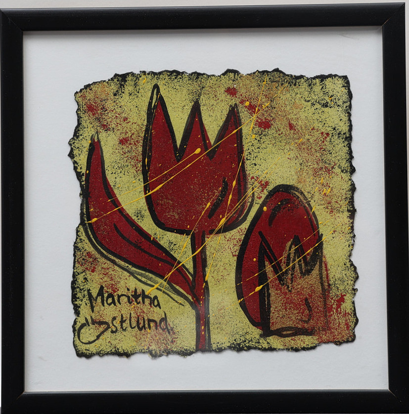 5017013. MARITHA ÖSTLUND. Målning på papper, blomster, signerad.