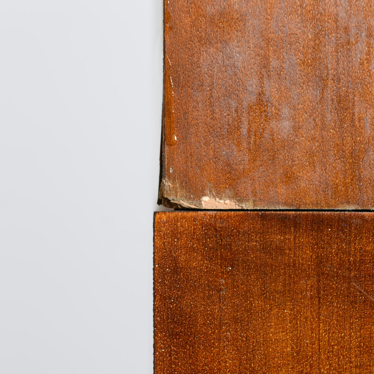 Bruksslitage. Märken och repor. Limrester på övre plan.