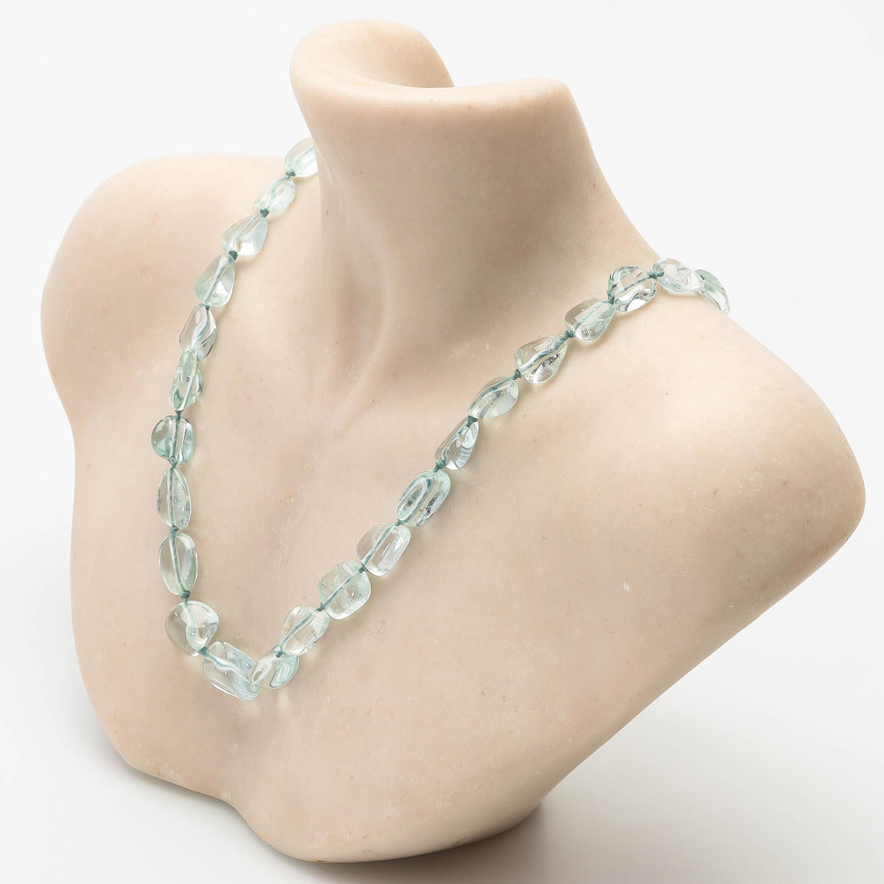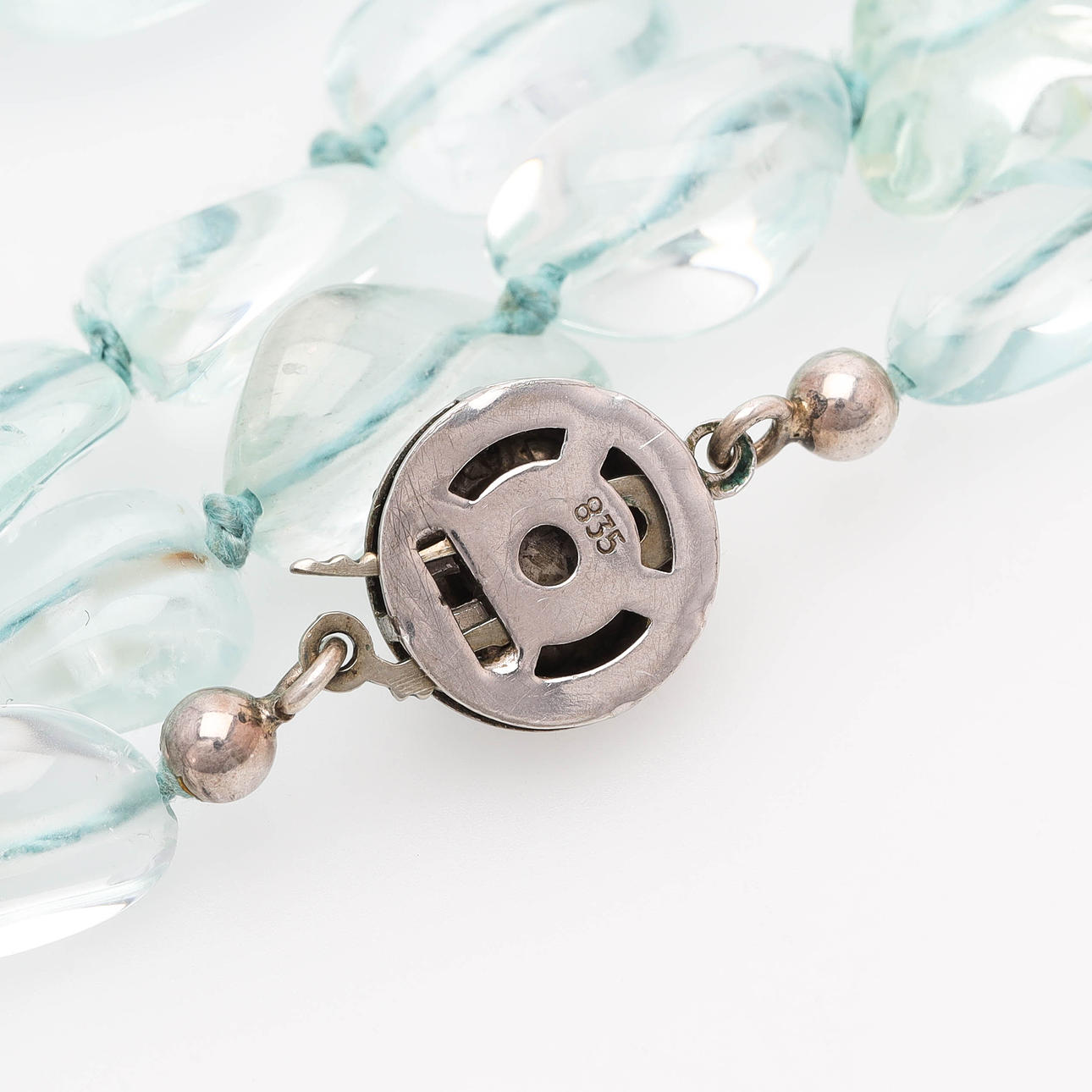 Längd 56 cm. Trumlade akvamkariner, längd ca 9 - 15 mm. Vikt 44 gram.