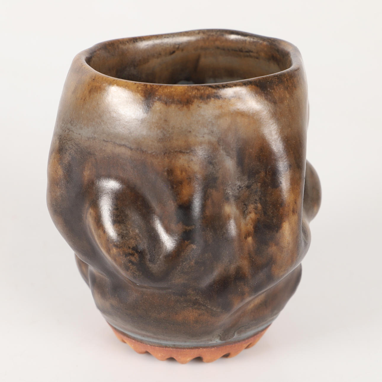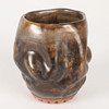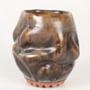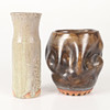 1 brun, "knölig" vas, signerad U.S, ca 12 x 11, höjd 13 cm.