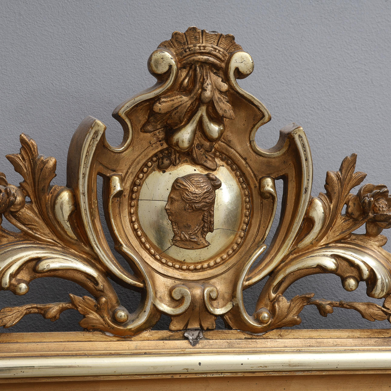 Pastellagedekor och skuren dekor, förgylld och bronserad, ca 160x65 cm.