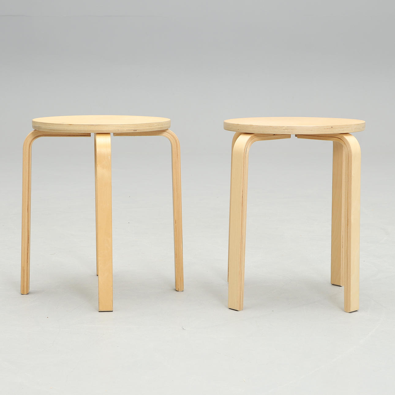 Skiktlimmad björk. Stapelbara. Etikettmärkta. Diameter 35, höjd 45 cm.