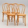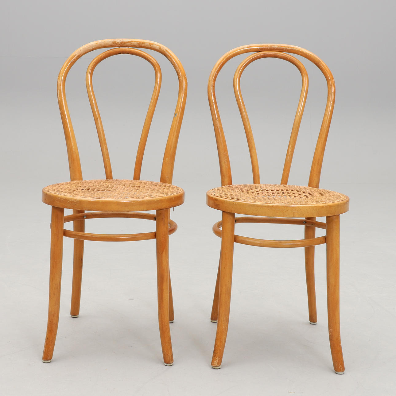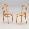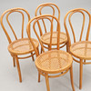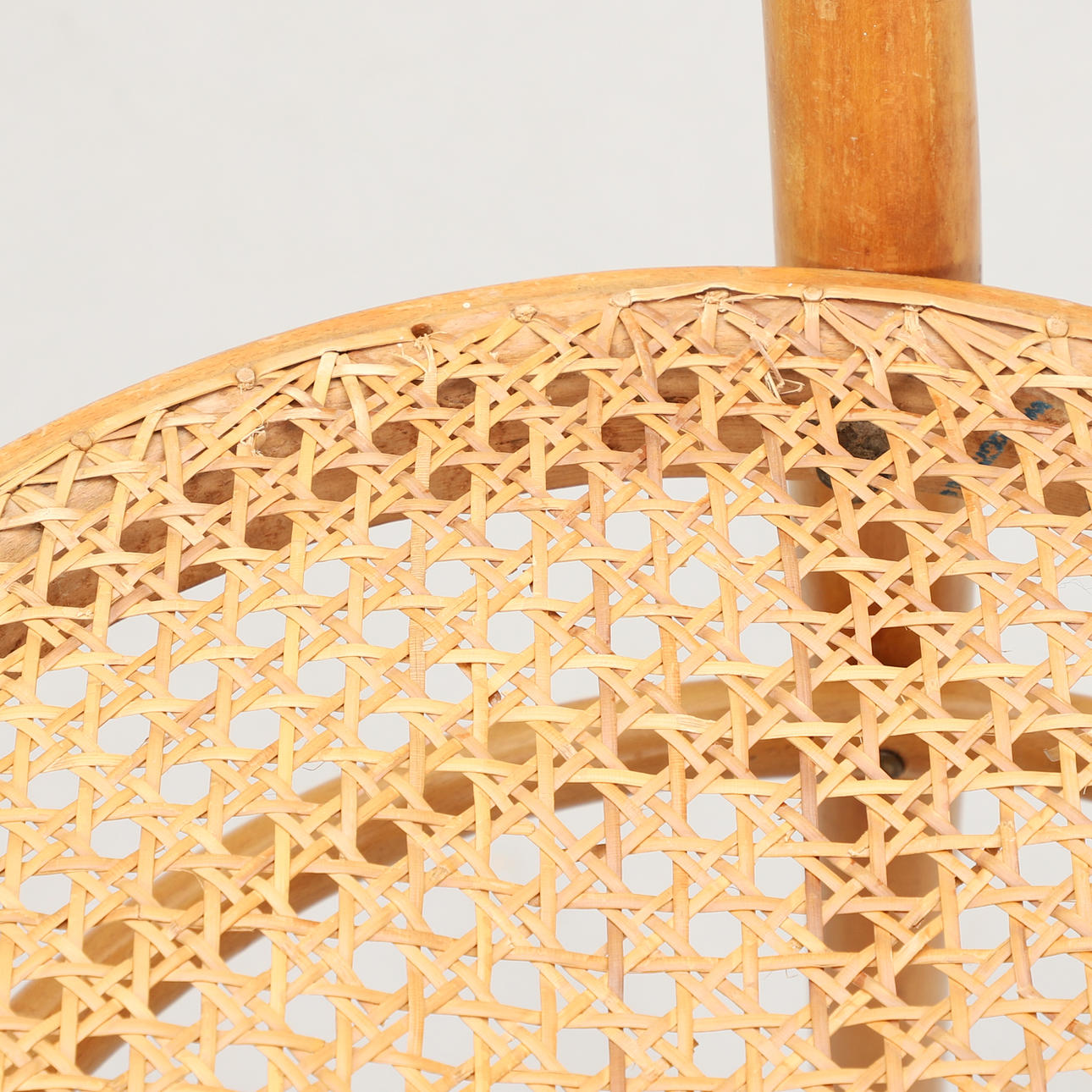 Böjträstomme av bok. Sits av flätad rotting. Bredd 42, djup 48, rygghöjd 90, sitthöjd 47 cm.
