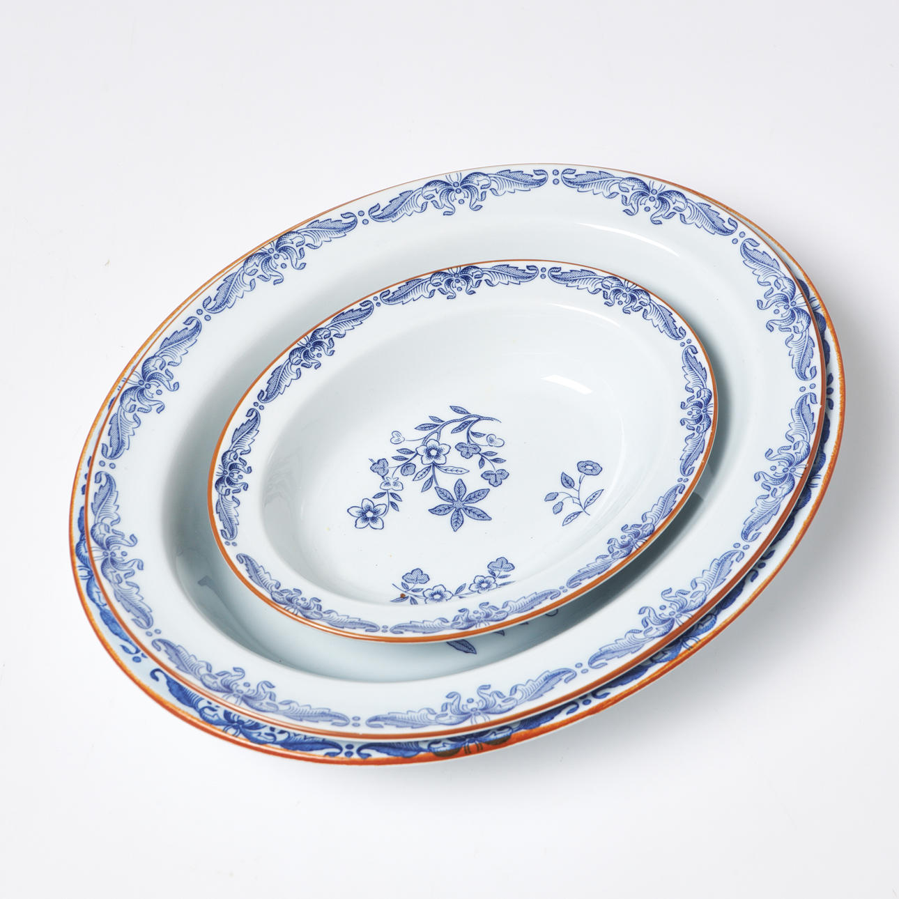 3 st djupa serveringsfat, ovala, längd 16,5-25,5 cm