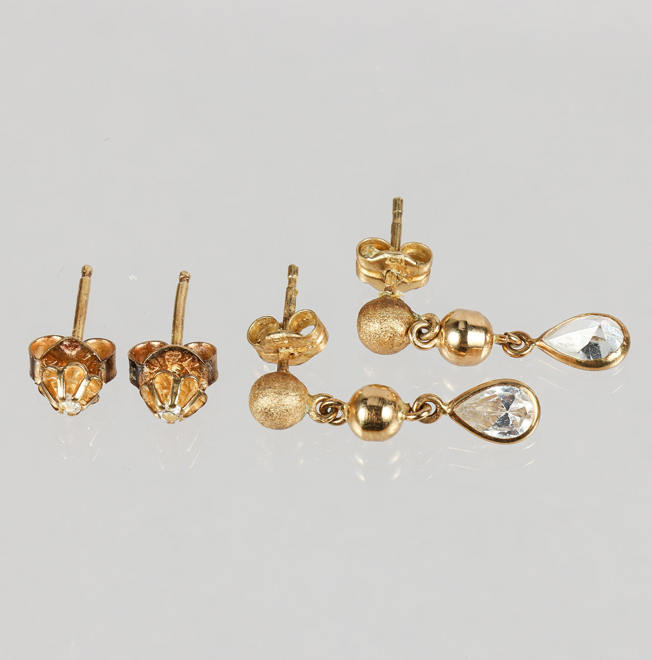 5020583. ÖRHÄNGEN 2 par, 18k guld med stenar.