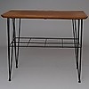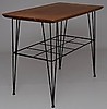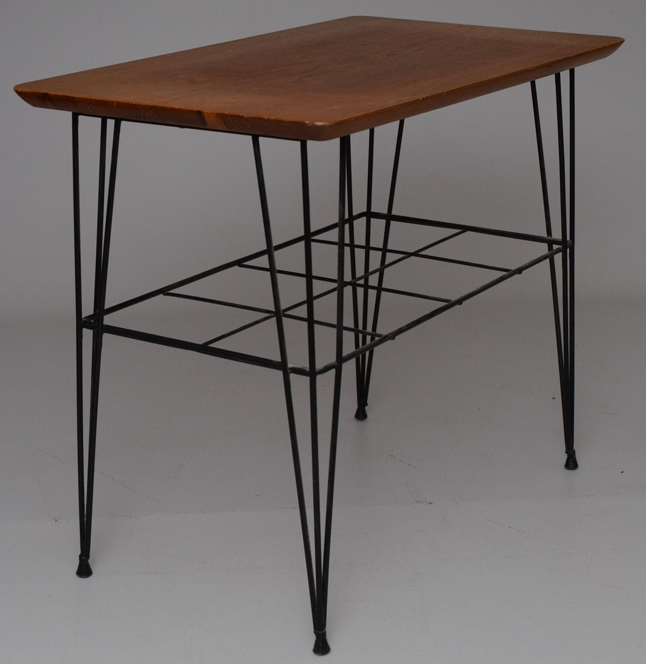 Teak, underrede i svärtad metall.
