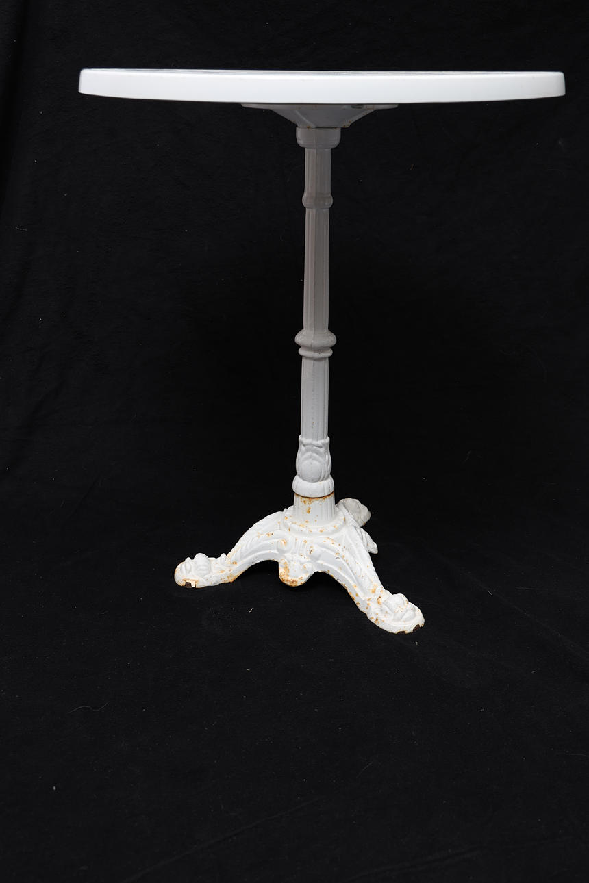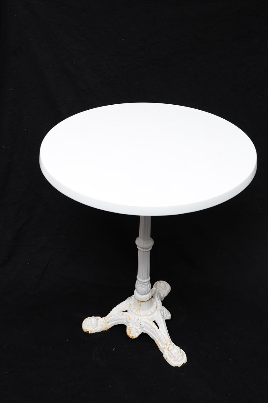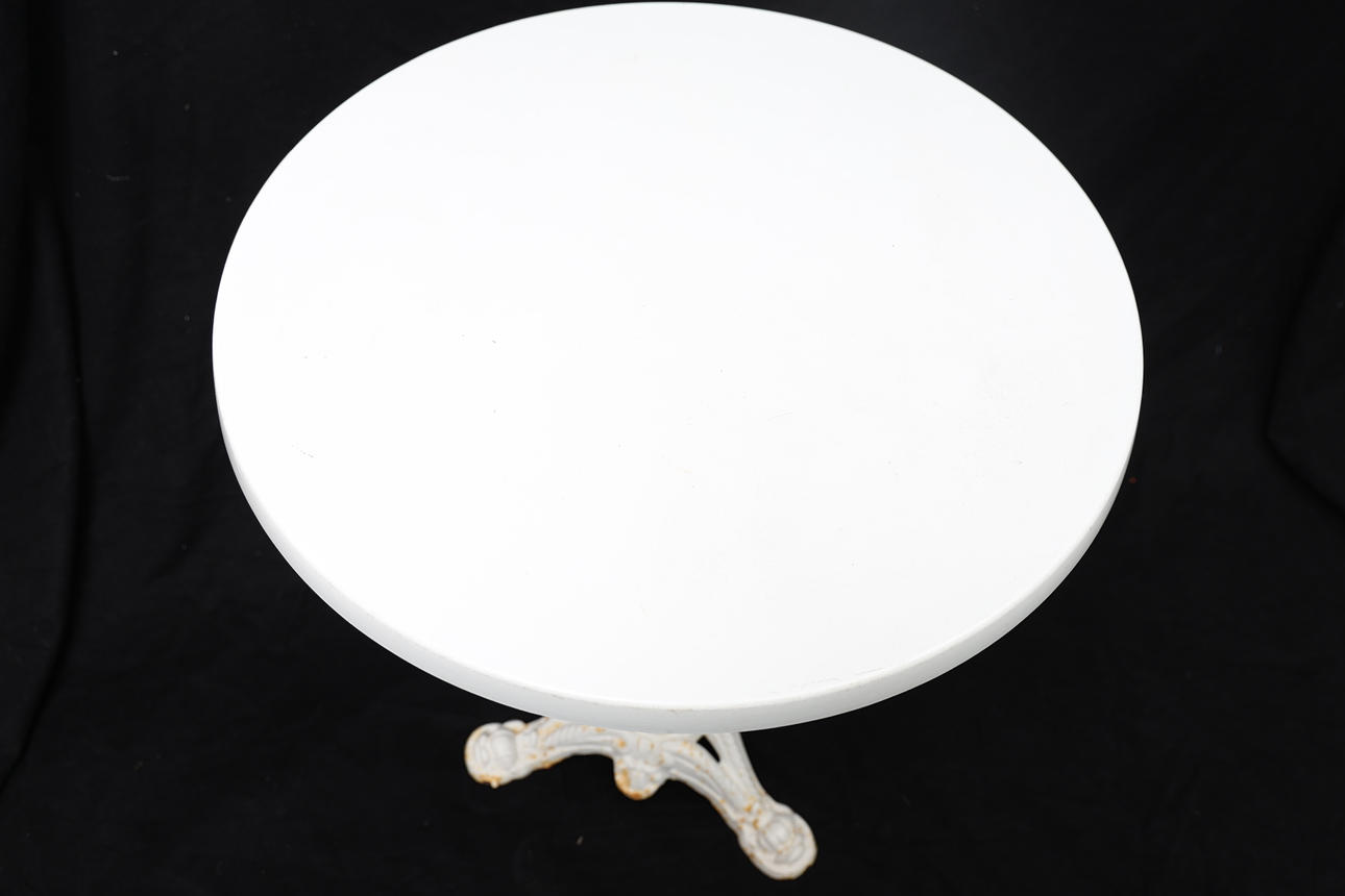 Vitmålat gjutjärn. Skiva av konstmaterial.