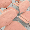 Bruksslitage. Textilklädsel ställvis nött och med fläckar. En av läderremmarna är defekt.