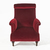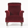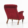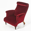 Klädd i röd plysch, mått ca 95, 95 x 73 cm.