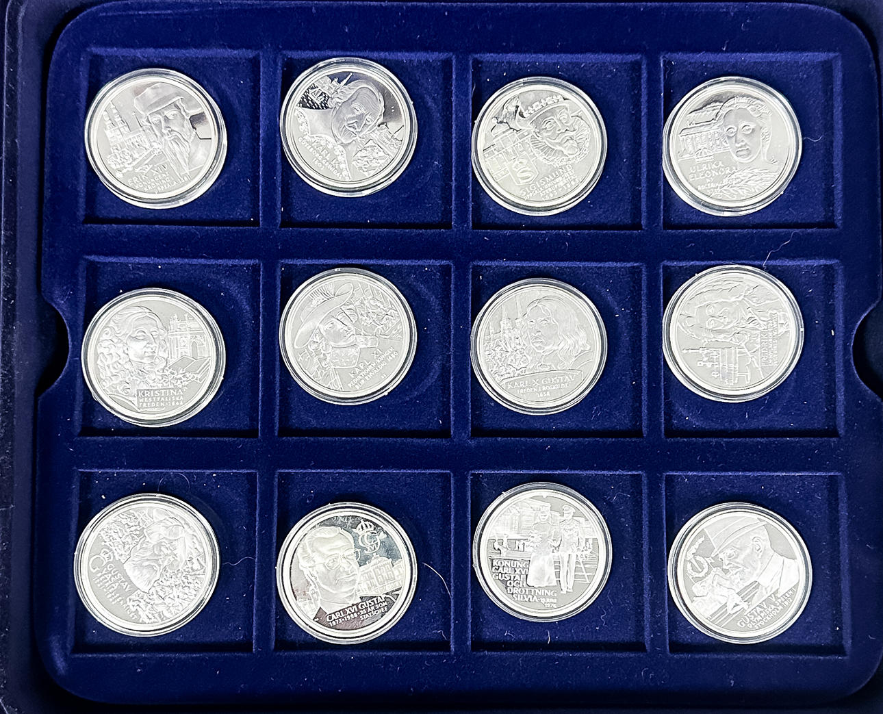 5022616. SILVERMYNT SAMLING, "Sveriges Regenter", 36 mynt.