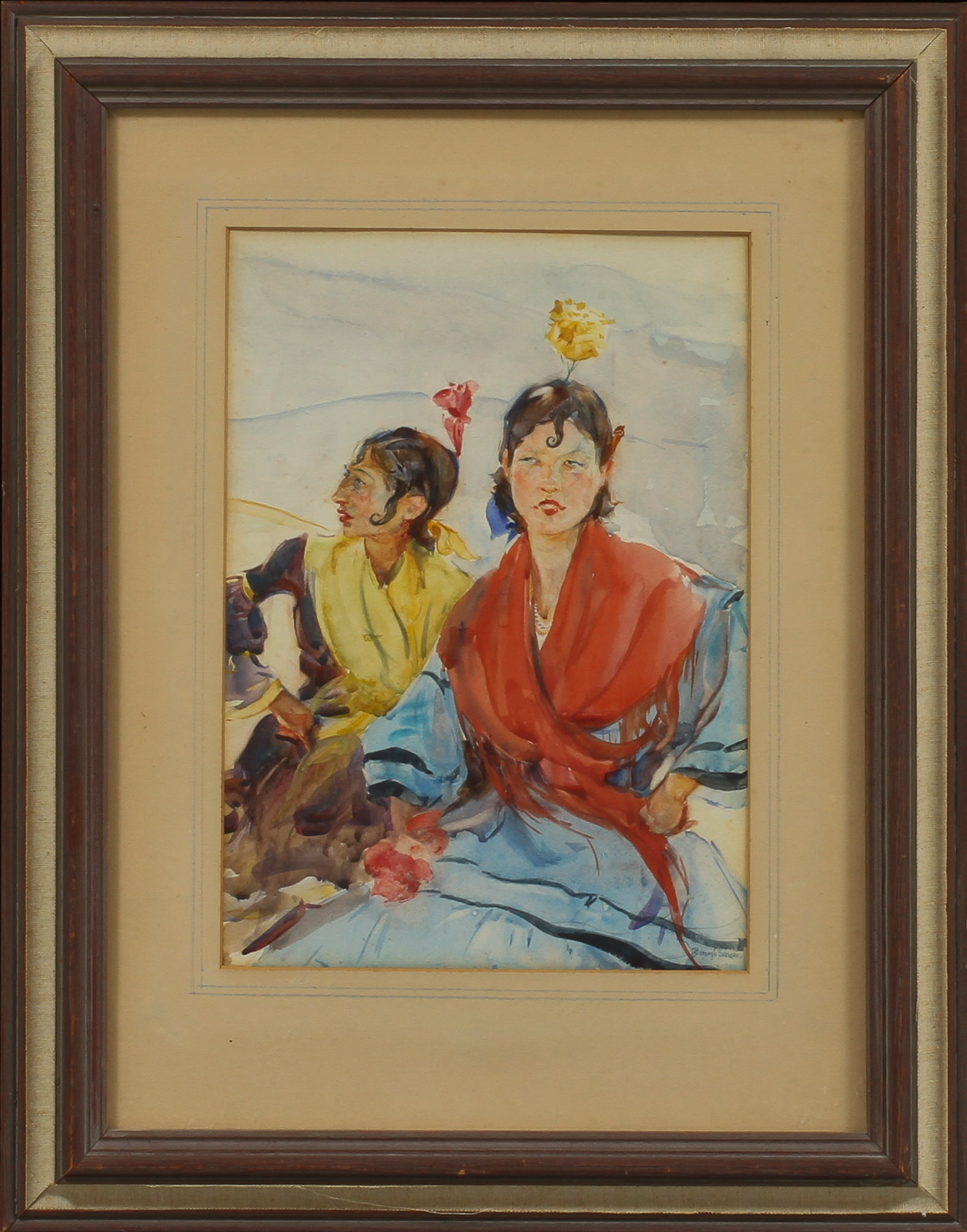 502427. ERNEST BOROUGH JOHNSON. Spanjorskor, akvarell, sign.