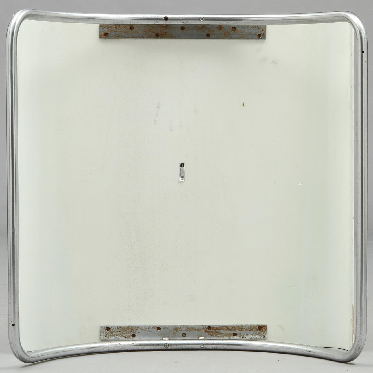 Vitlackerad formpressad skiva på förkromade stålben. 80 x 80, höjd 28 cm. Ett bord etikettmärkt.