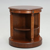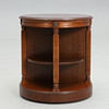 Snurrbar. Mahognyfanerad. Rund skiva, godronnerade kolonnetter. Diam 60, höjd 64 cm.