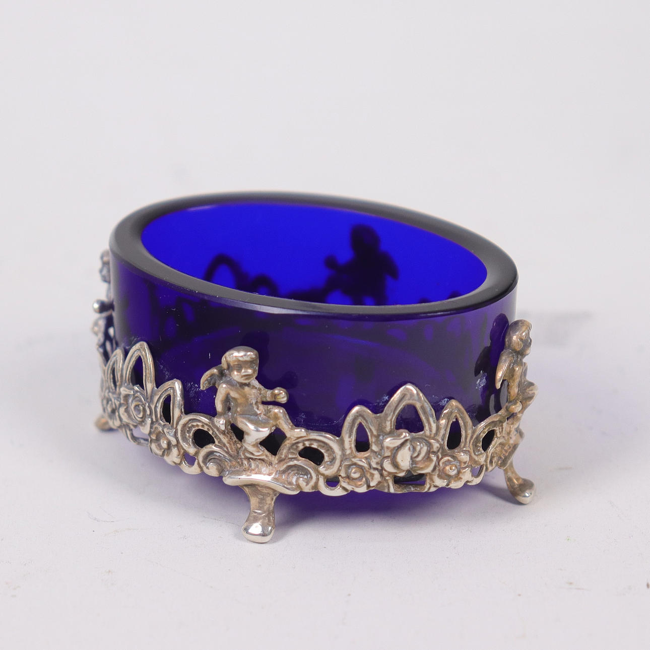 5025478. SILVER, pepparströare, saltkar samt servettring, 8 delar.