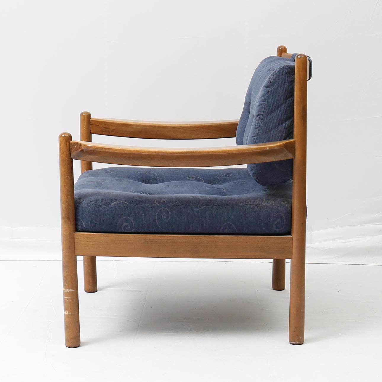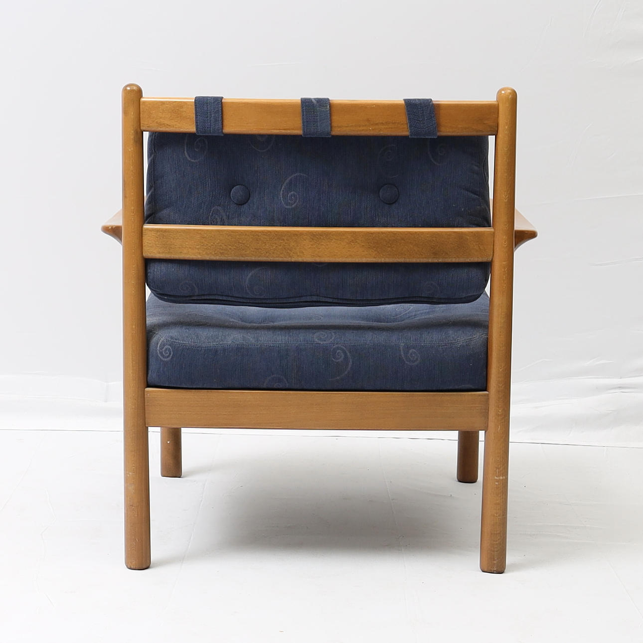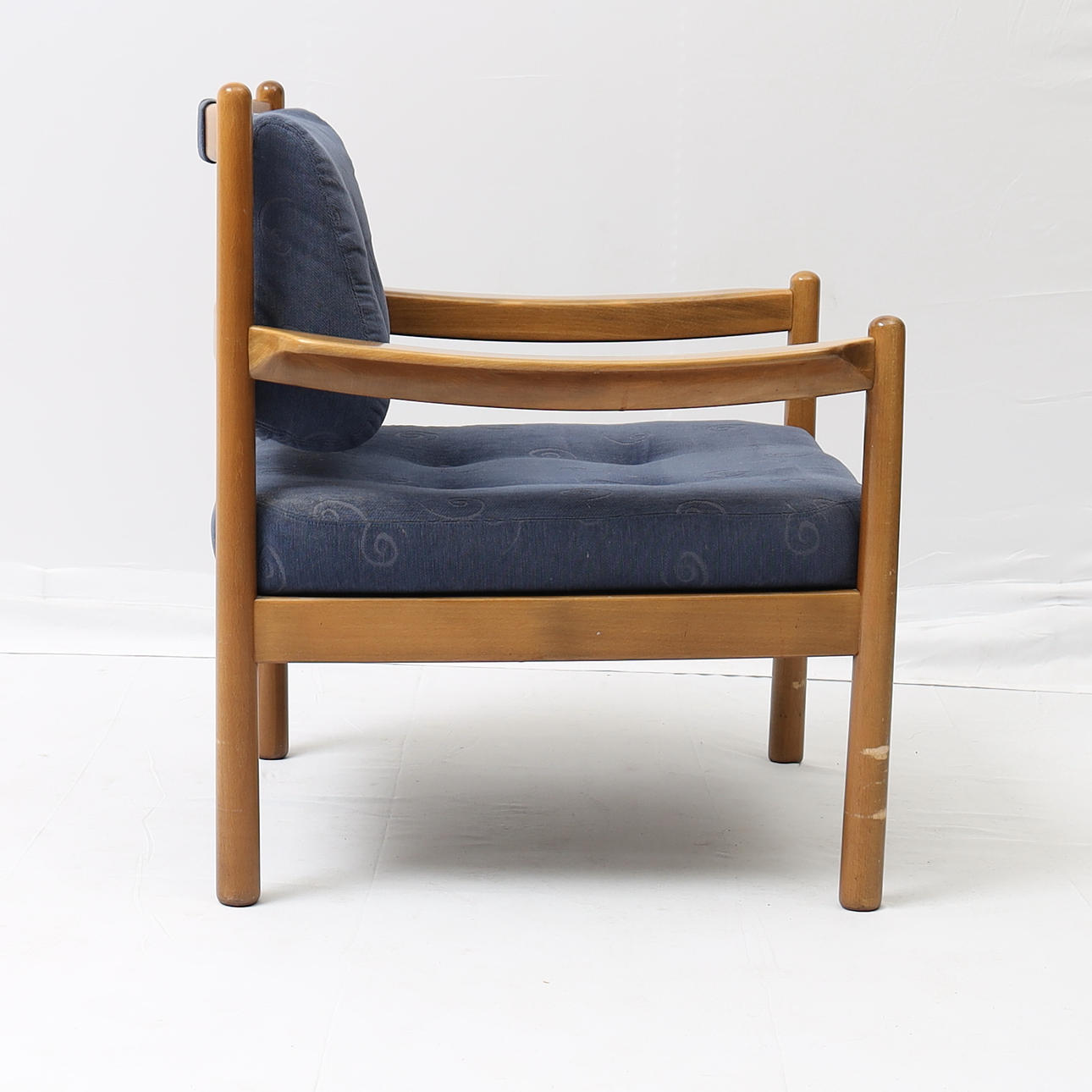 Betsad bok, textila dynor. Höjd 79cm Sitthöjd 42cm.