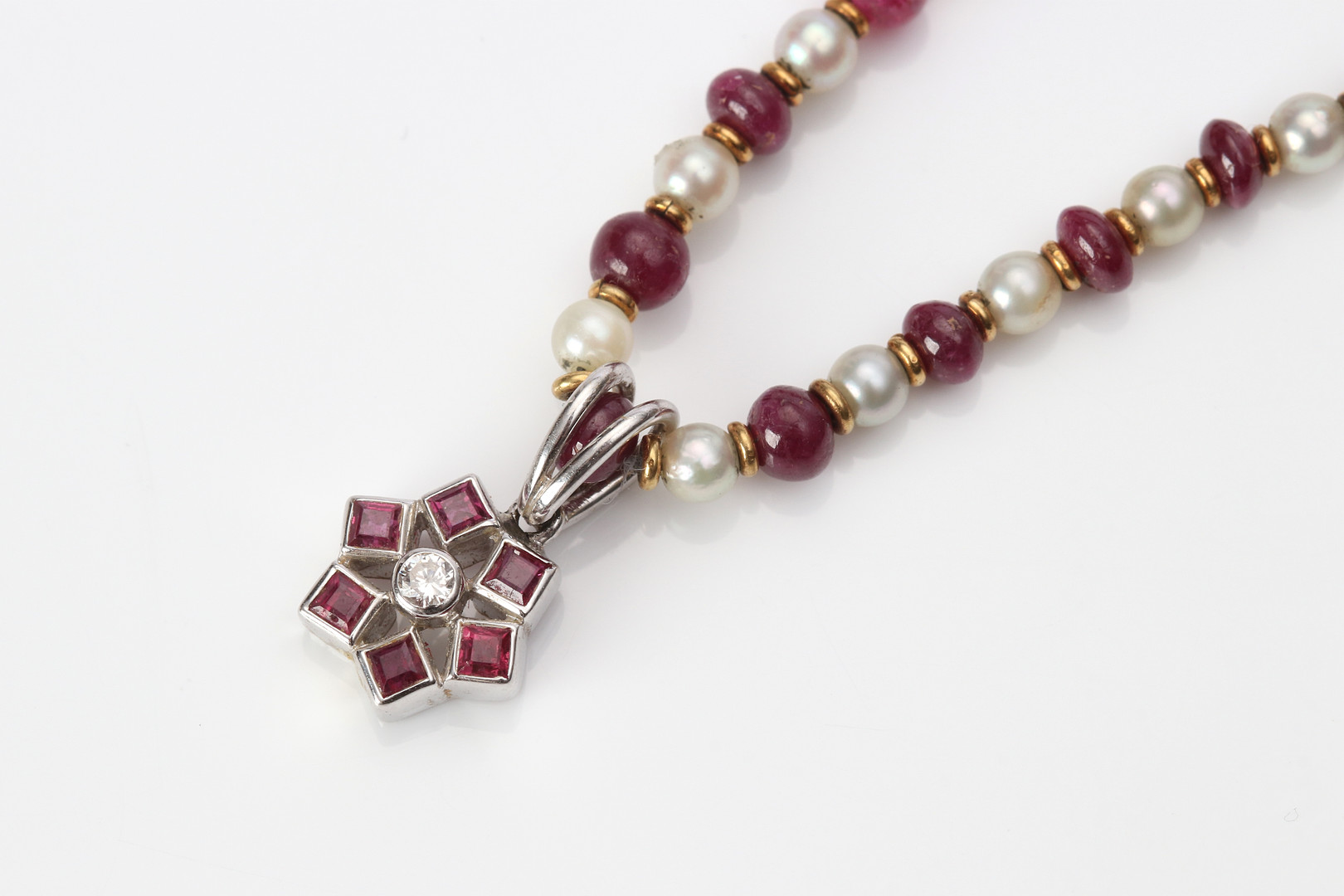 5026536. COLLIER MED RUBINER 18K.