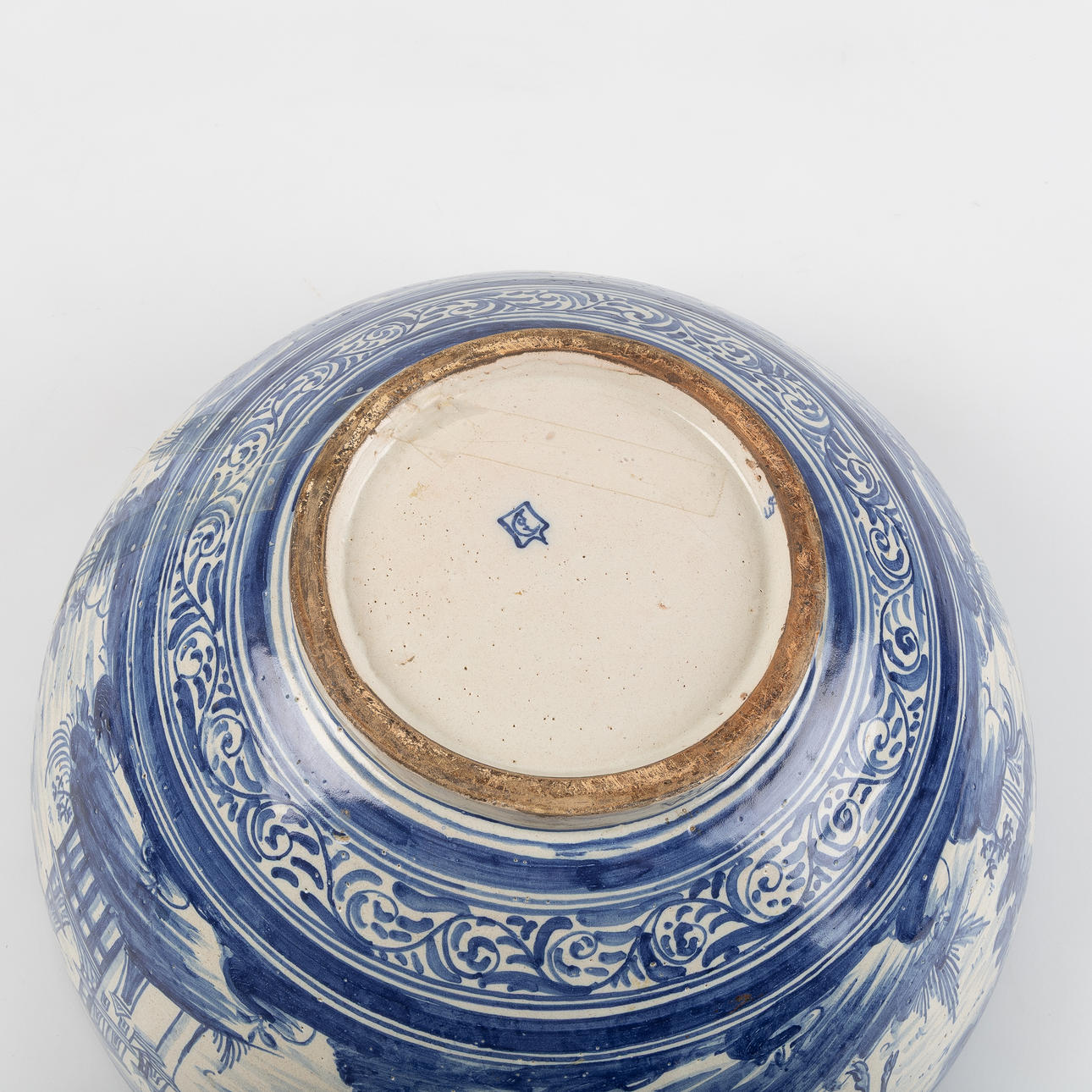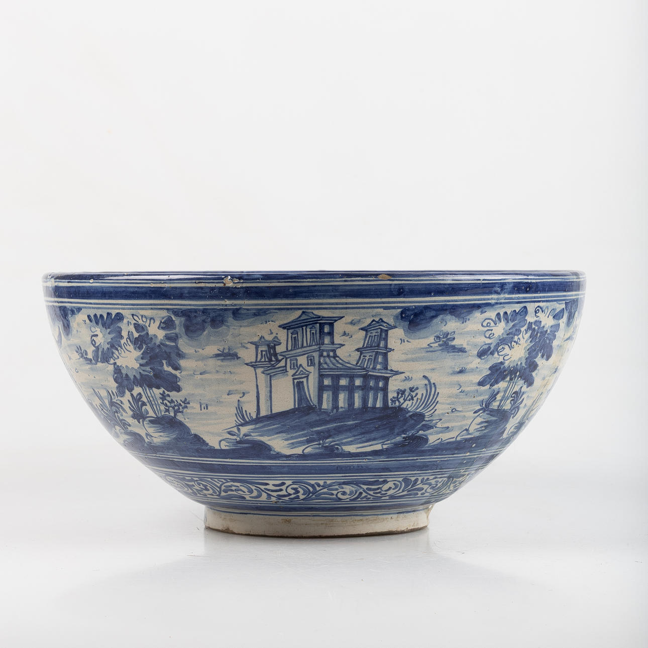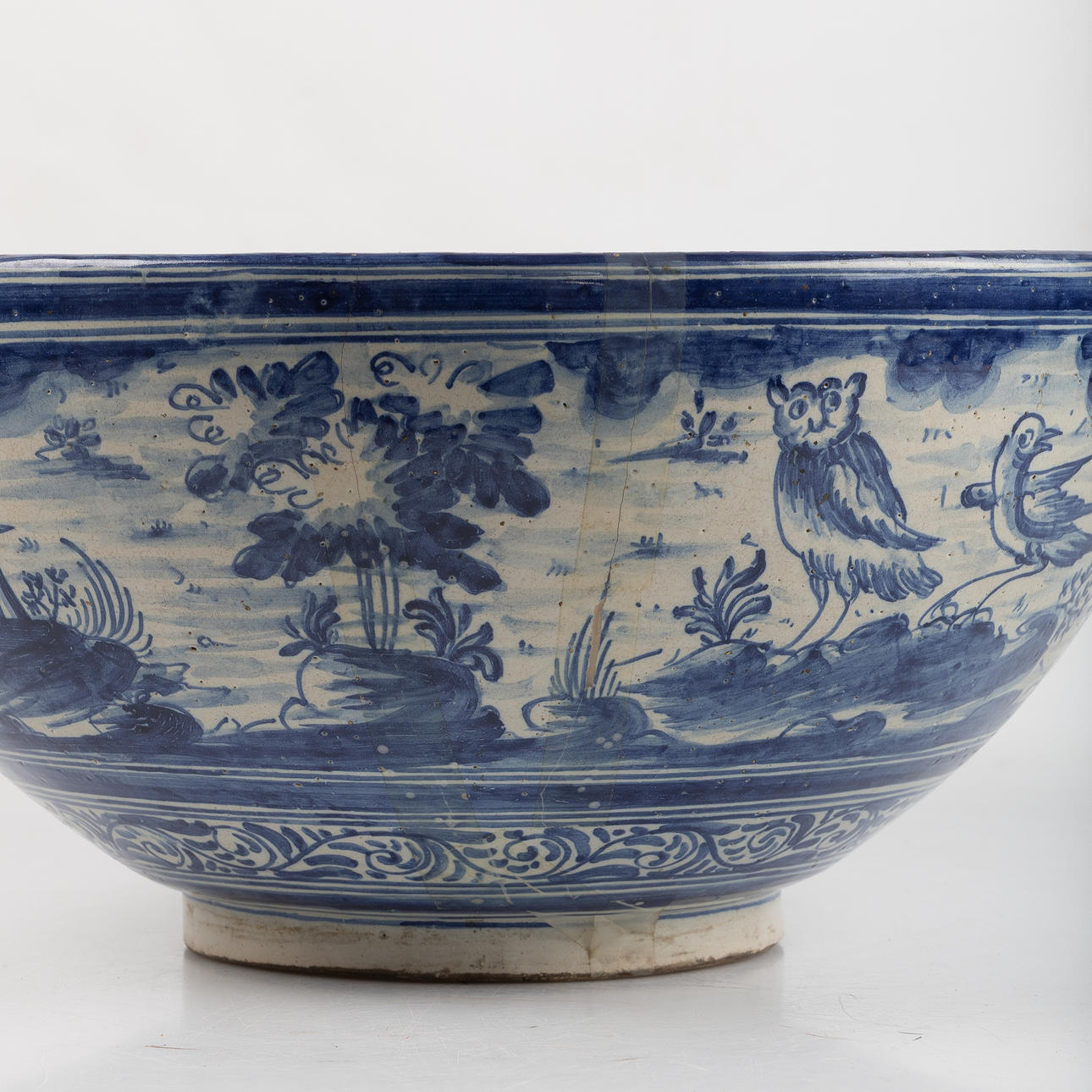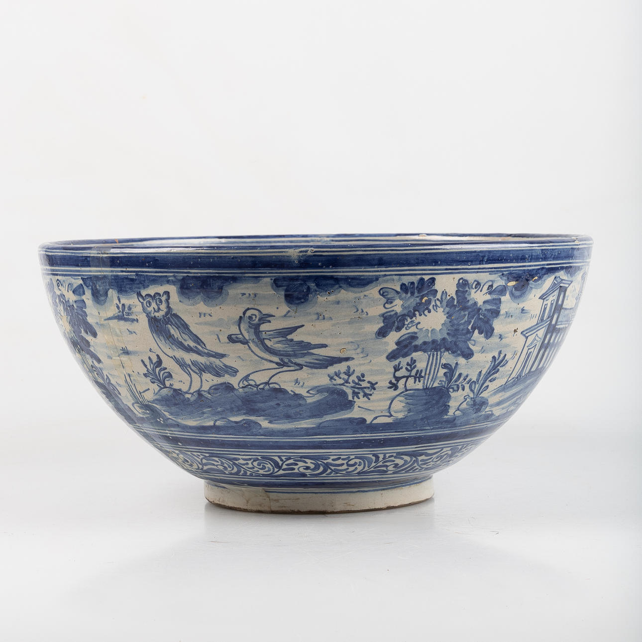 glaserat lergods. höjd 18 cm, diameter 39 cm.