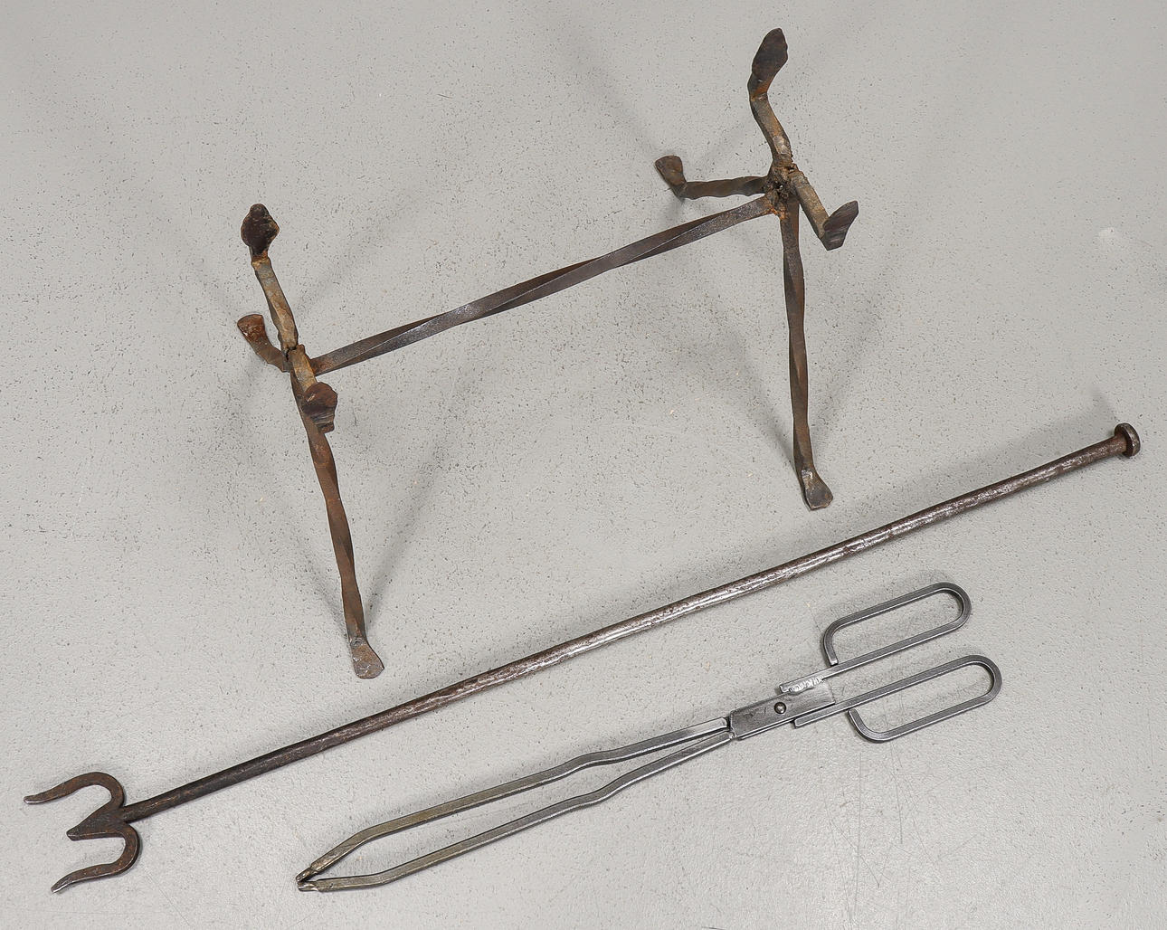 5027958. SMIDE ställ, eldgaffel och eldtång.