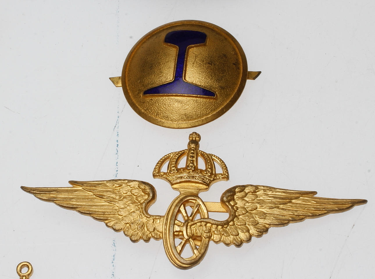 JÄRNVÄGSMÄRKEN samt KNAPPAR, omkring 1900.
