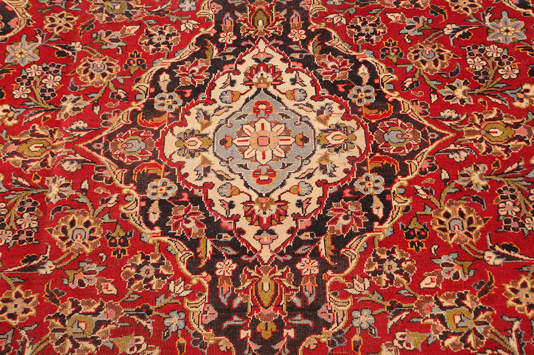 Dekor med heltäckande Shah Abbas-mönster mot röd botten