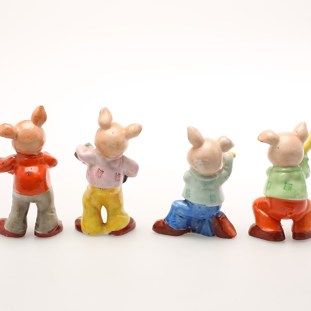 503761. FIGURINER, 4 st, porslin, spelande grisar.