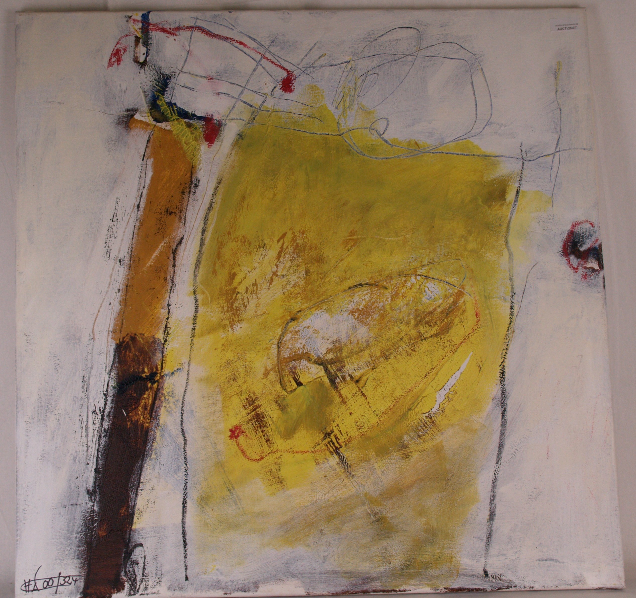 504093. WIELAND, CHRISTINE. blandteknik på duk.