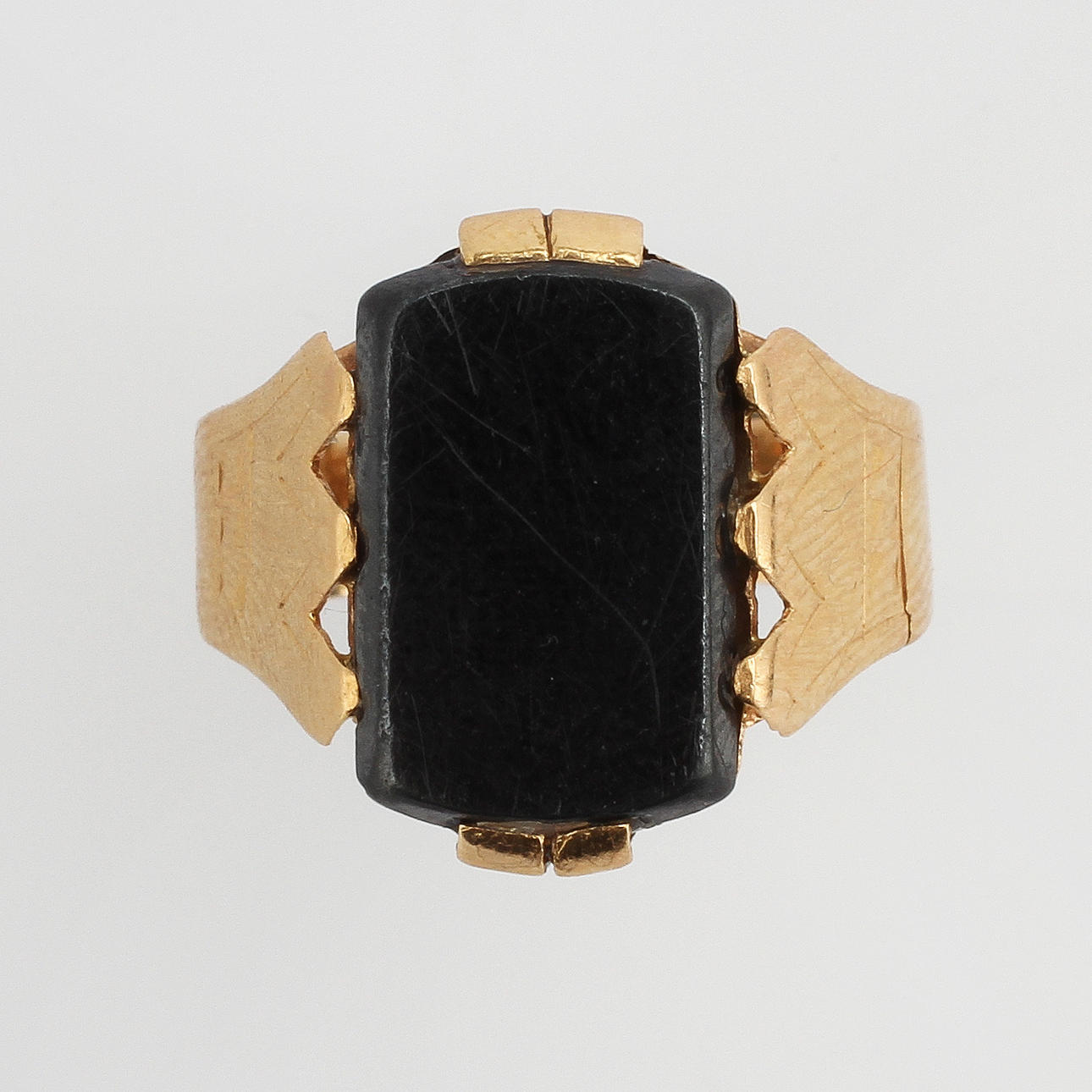 50433. RING, 18k guld med svart sten, 4,8 gram.