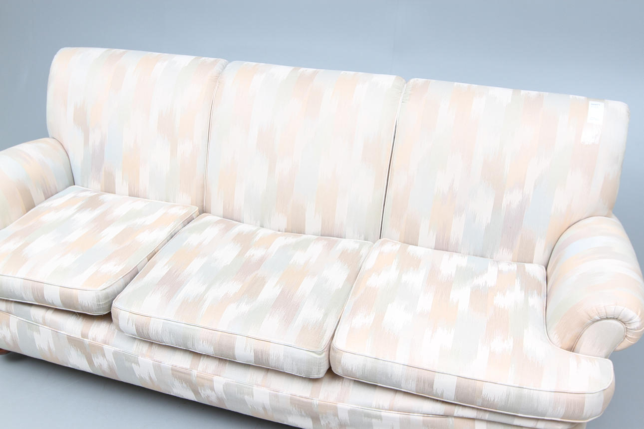 A.Norell Aneby.Kulfötter med lösa sitsplymåer.Längd 205, bredd 90, höjd 80 cm. Lös armstödsskydd följer.