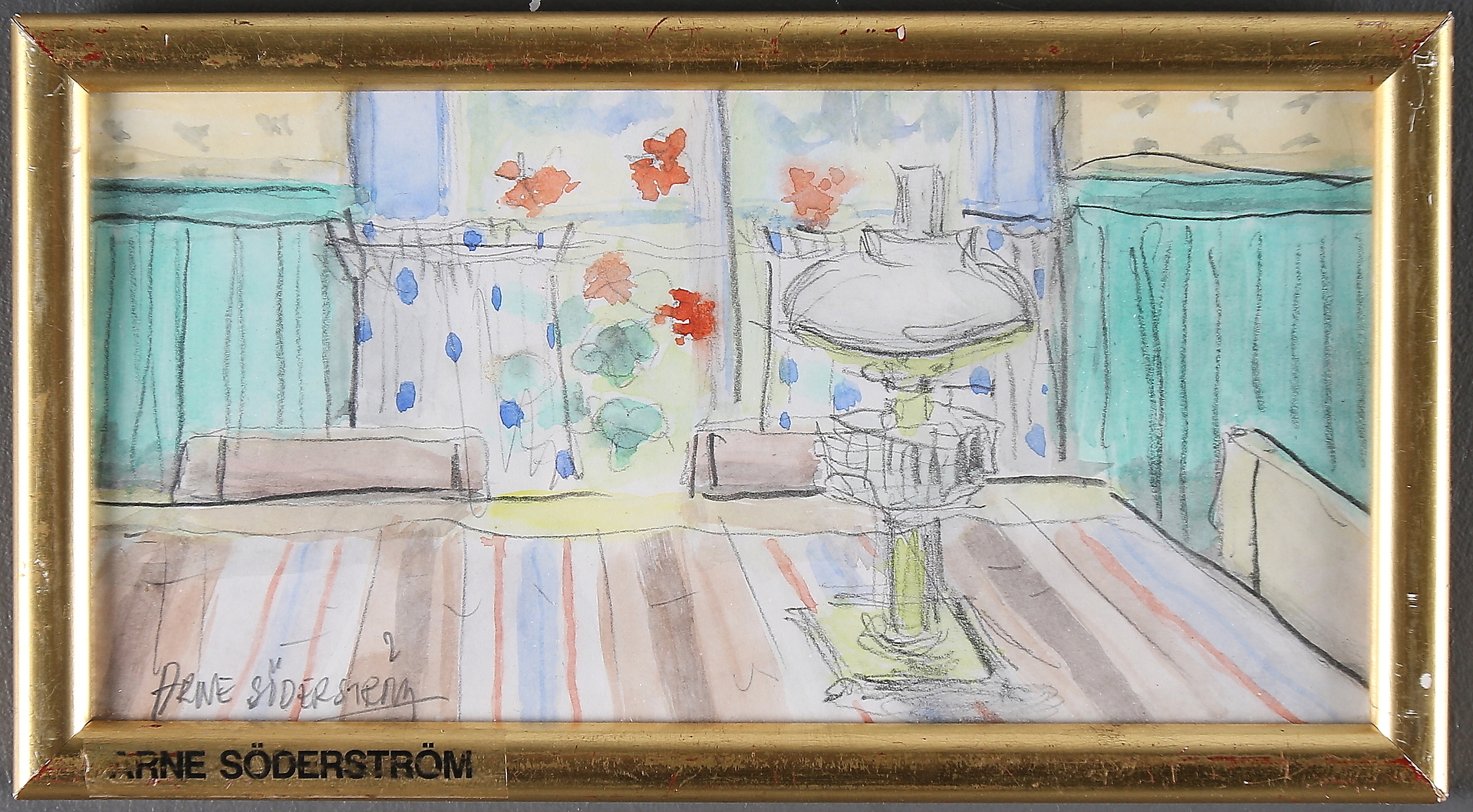 505066. ARNE SÖDERSTRÖM. Interiör, akvarell, signerad.