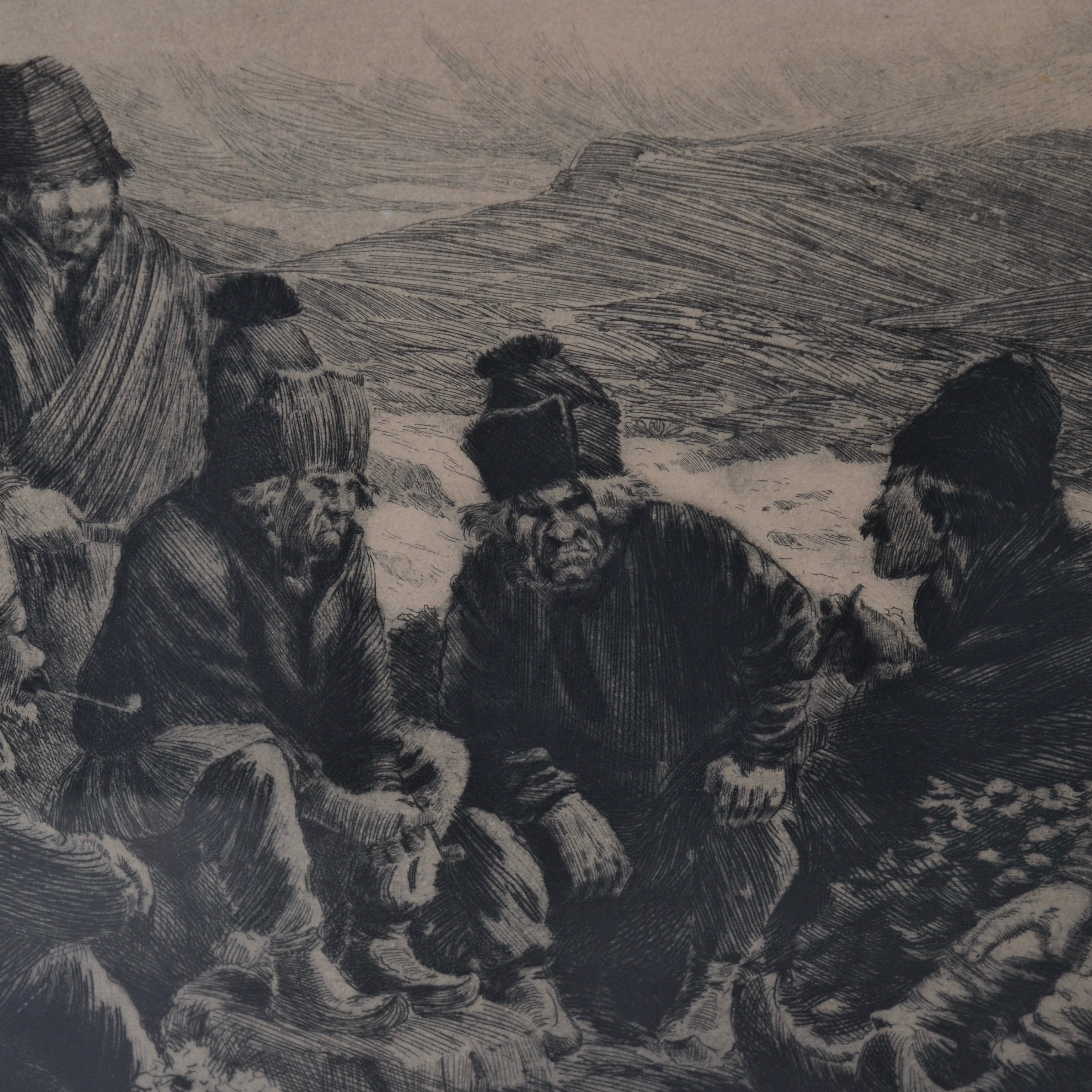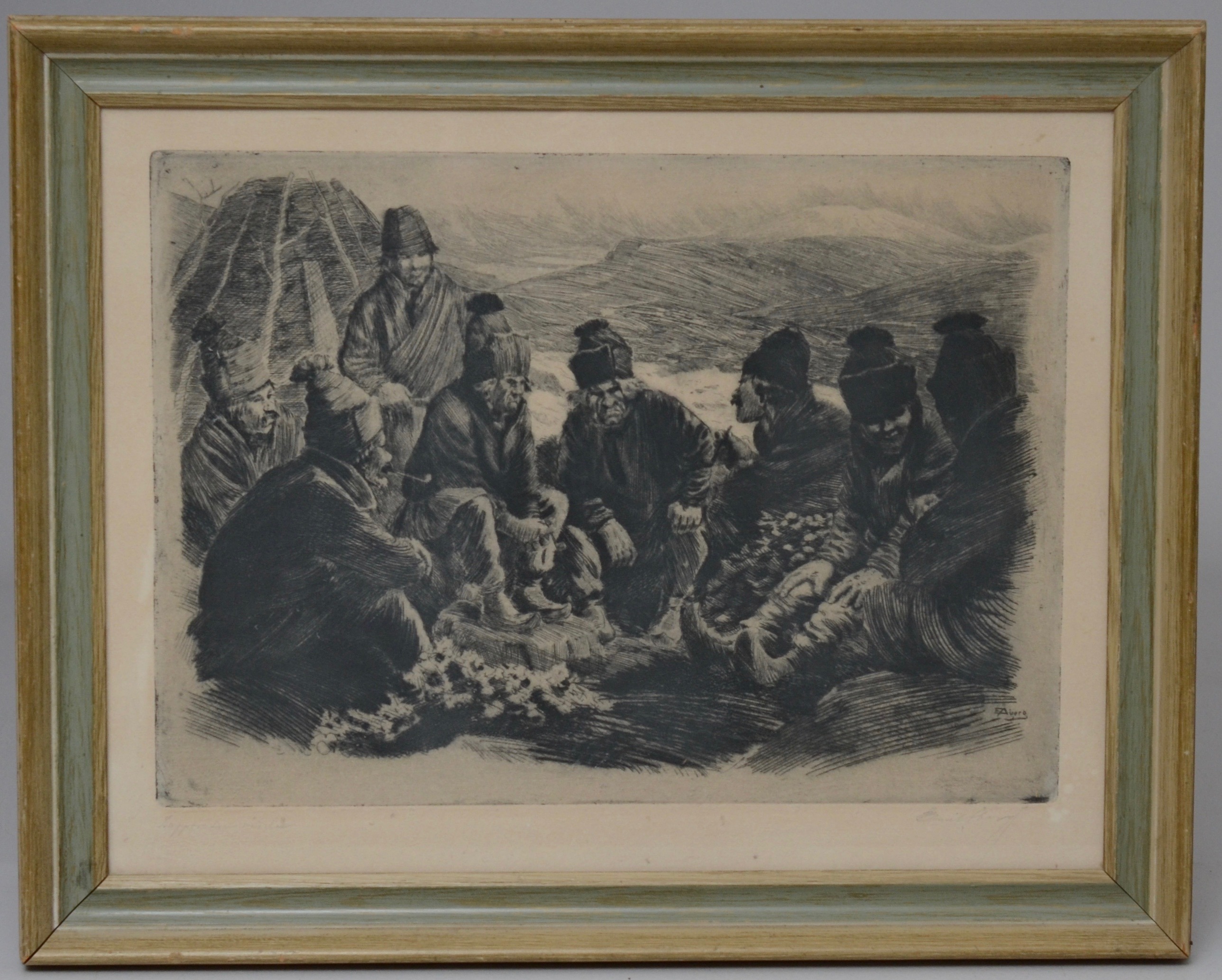 505461. EMIL ÅBERG. ETSNING, samer vid lägereld.