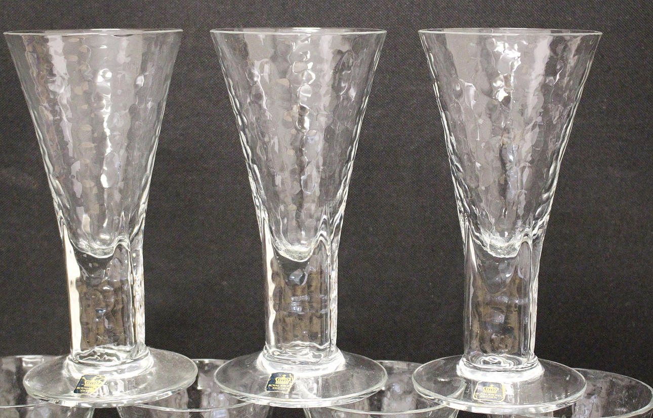 7 st, glas, höjd 17 cm, diameter 8,5 cm.