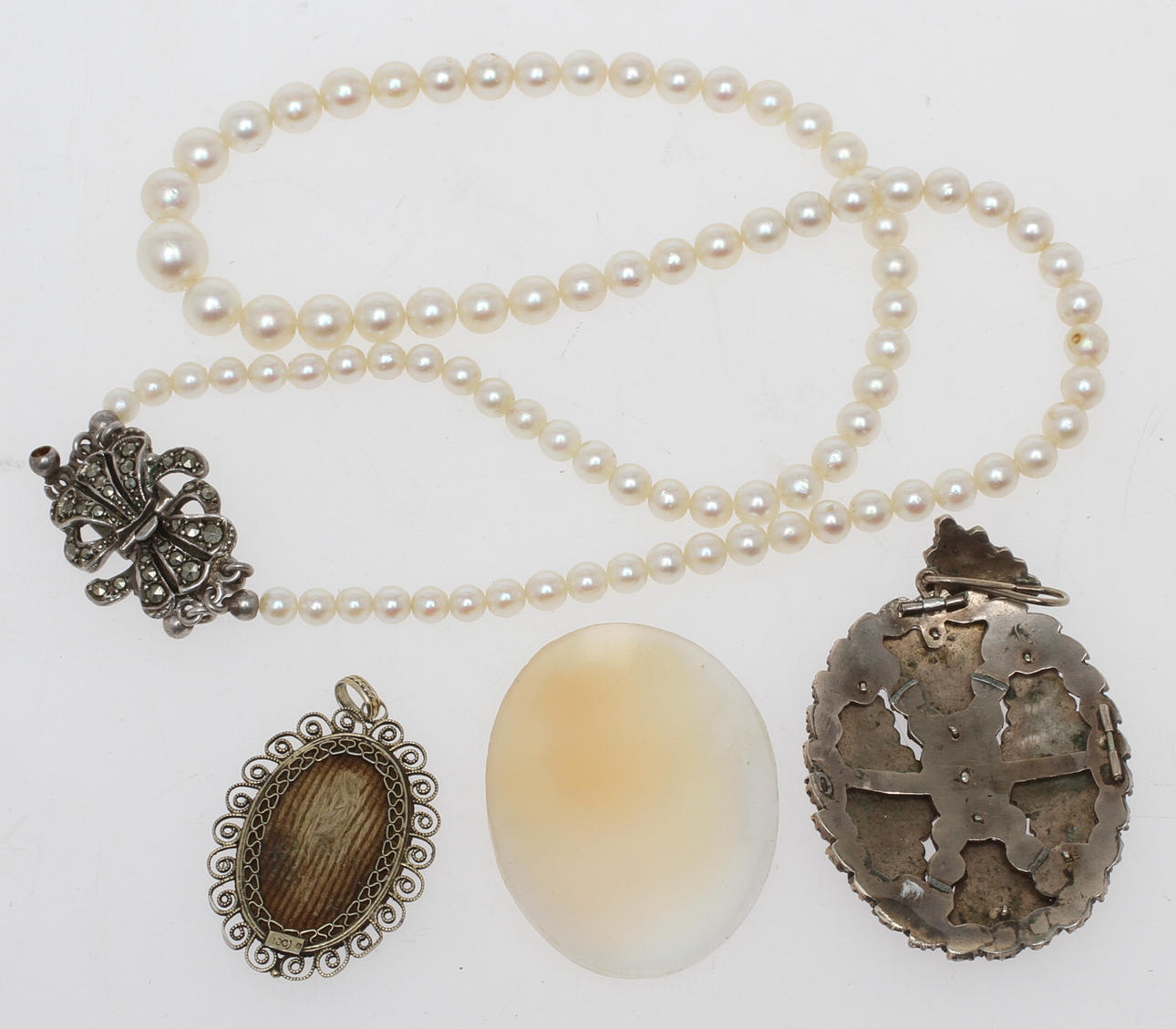 Pärlcollier, silverlås, längd ca 44 cm.