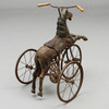 Föreställande häst i trä. Hjul i metall. Längd 80, höjd 86 cm.